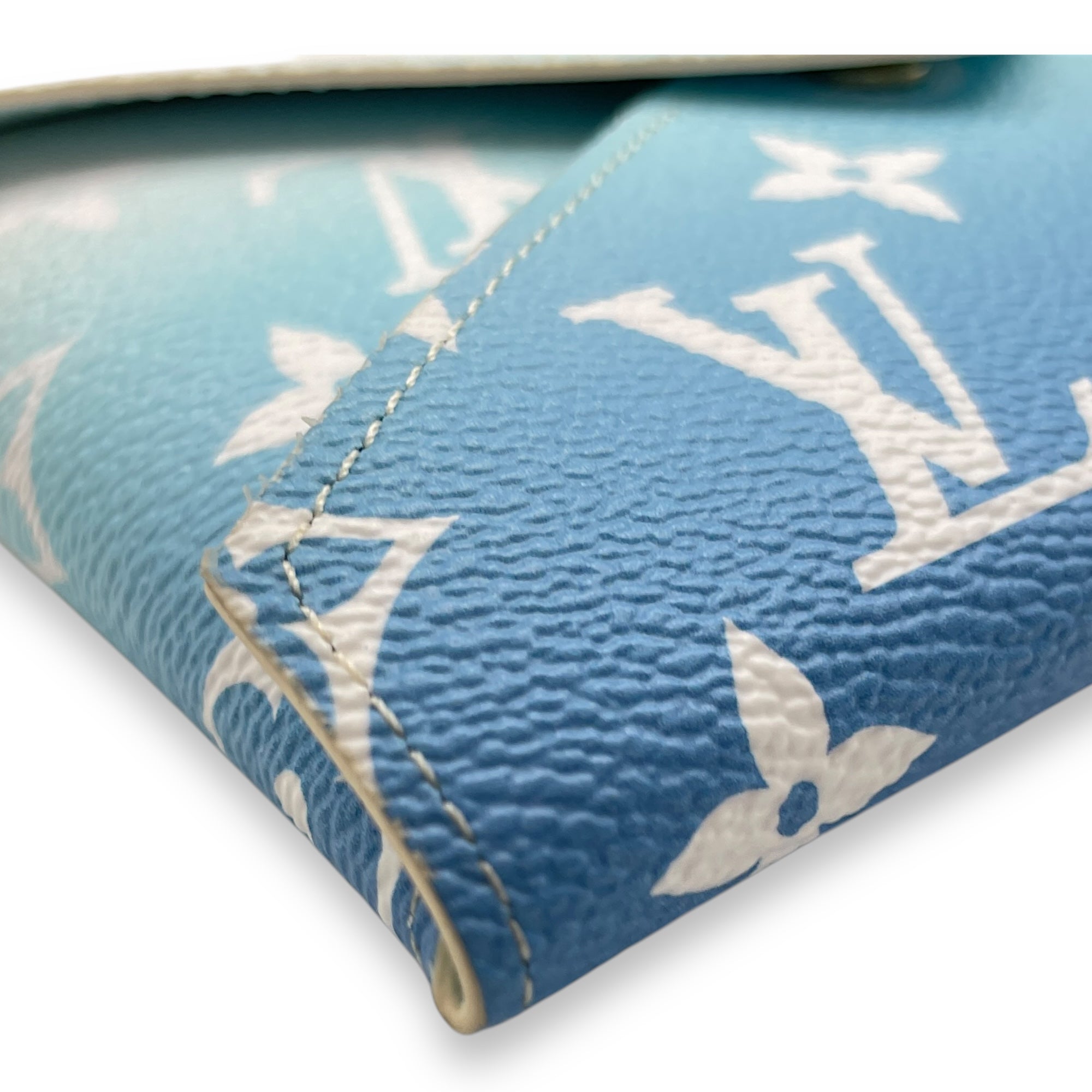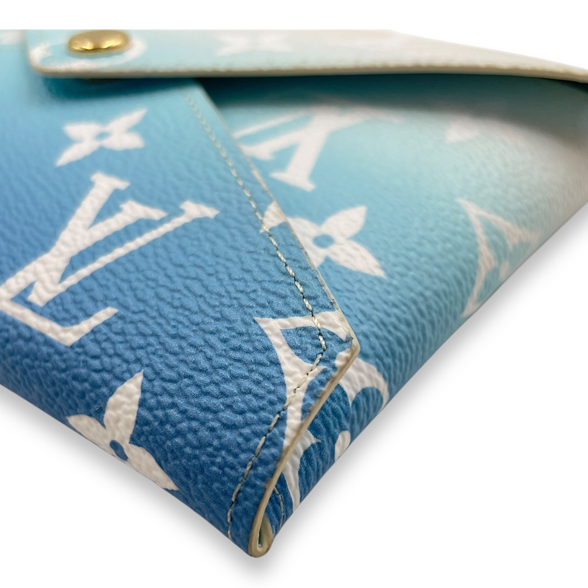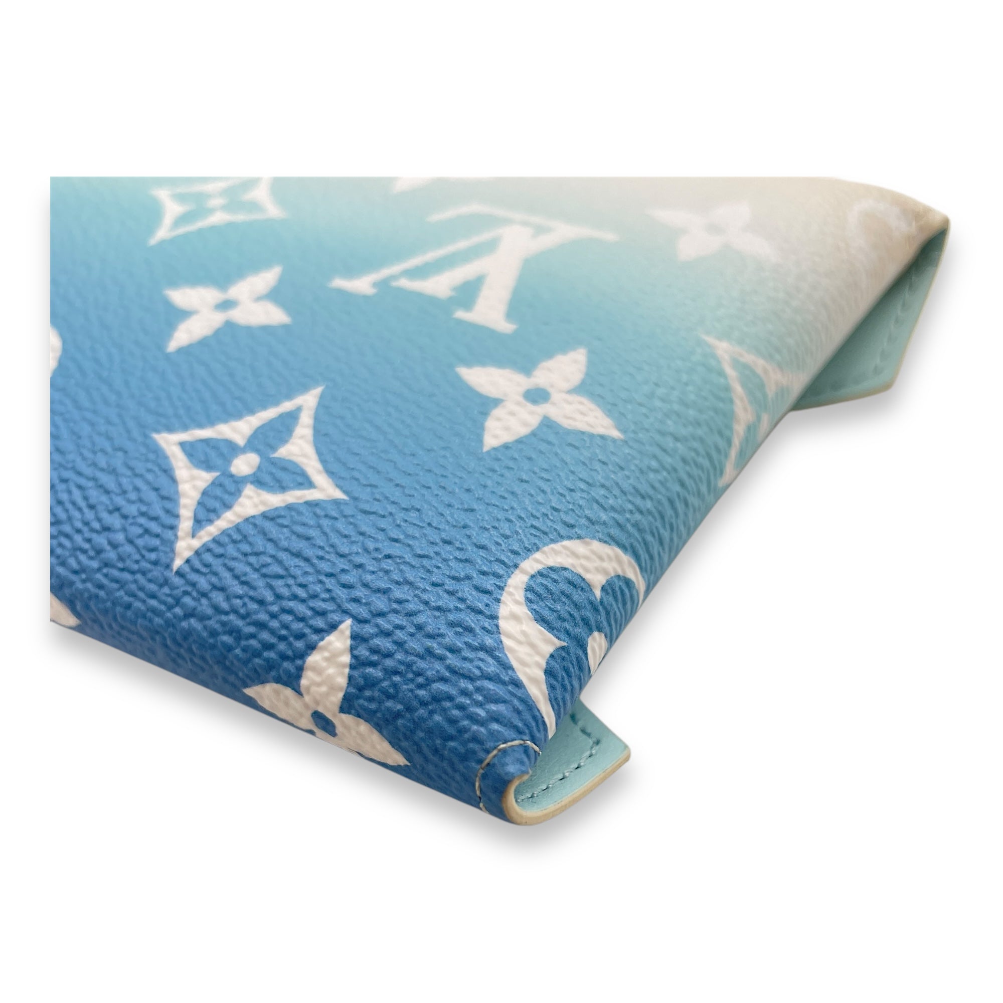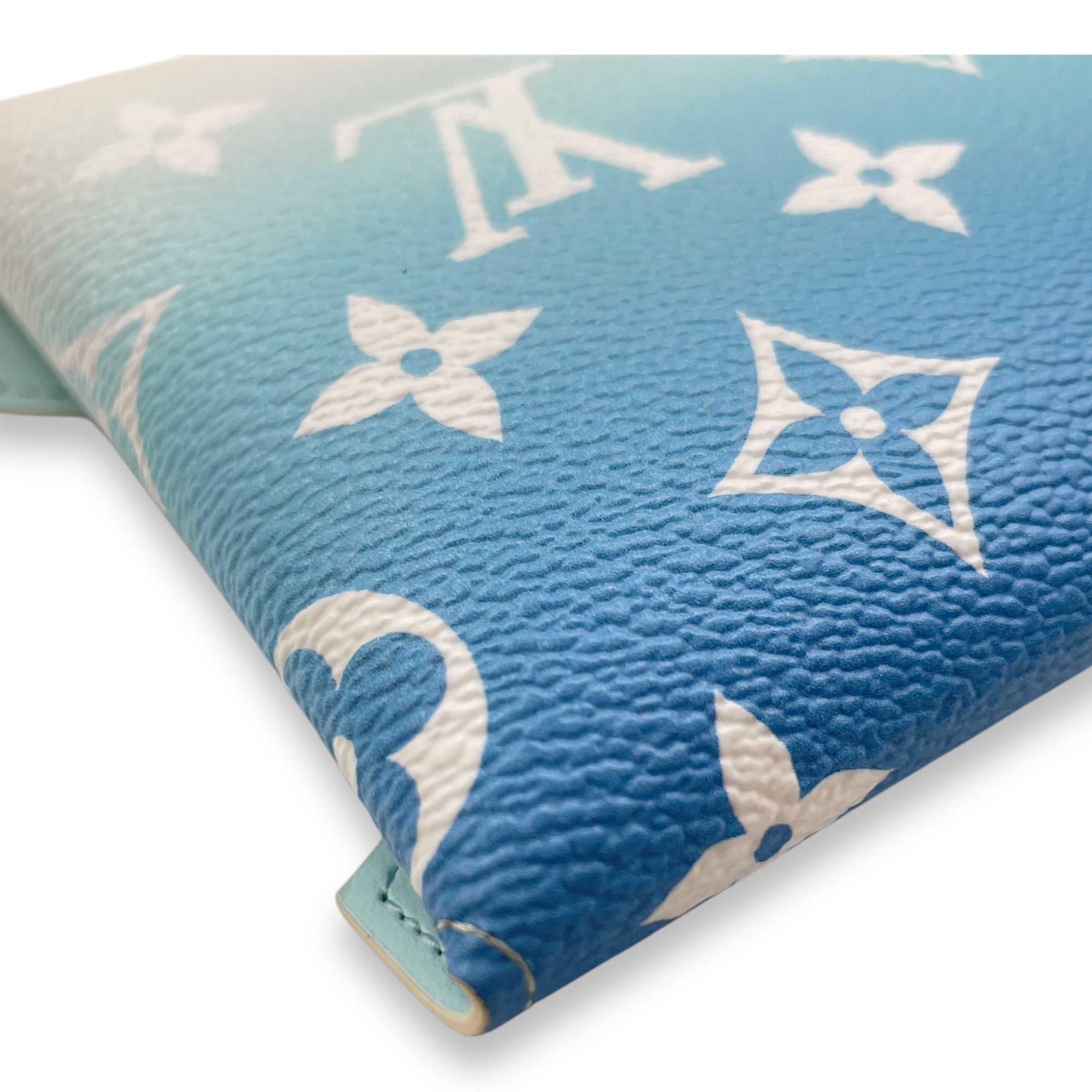 Kirigami Pochette by the pool Giant – MM Blue/Cream Pouch in Coated Canvas, Gold hardware