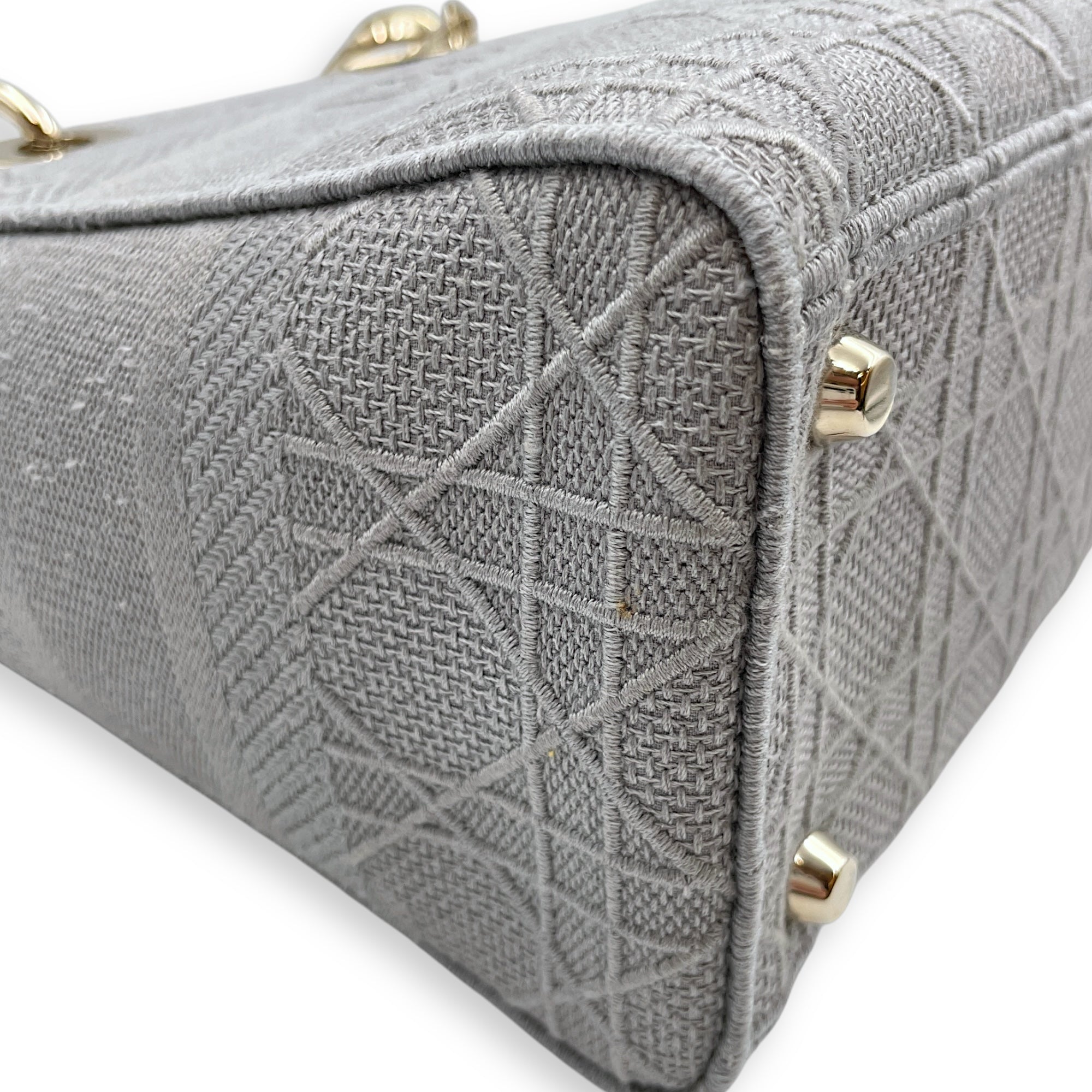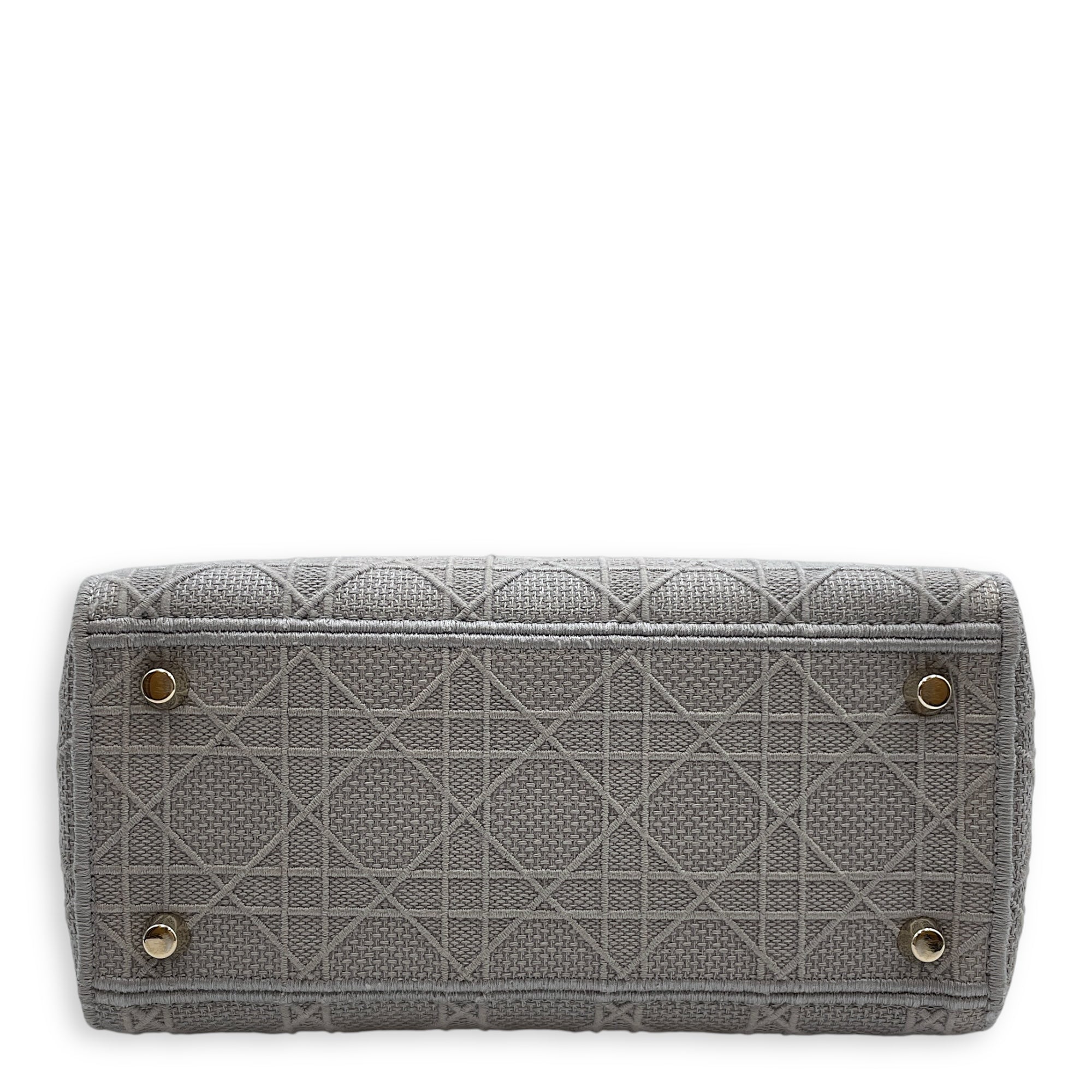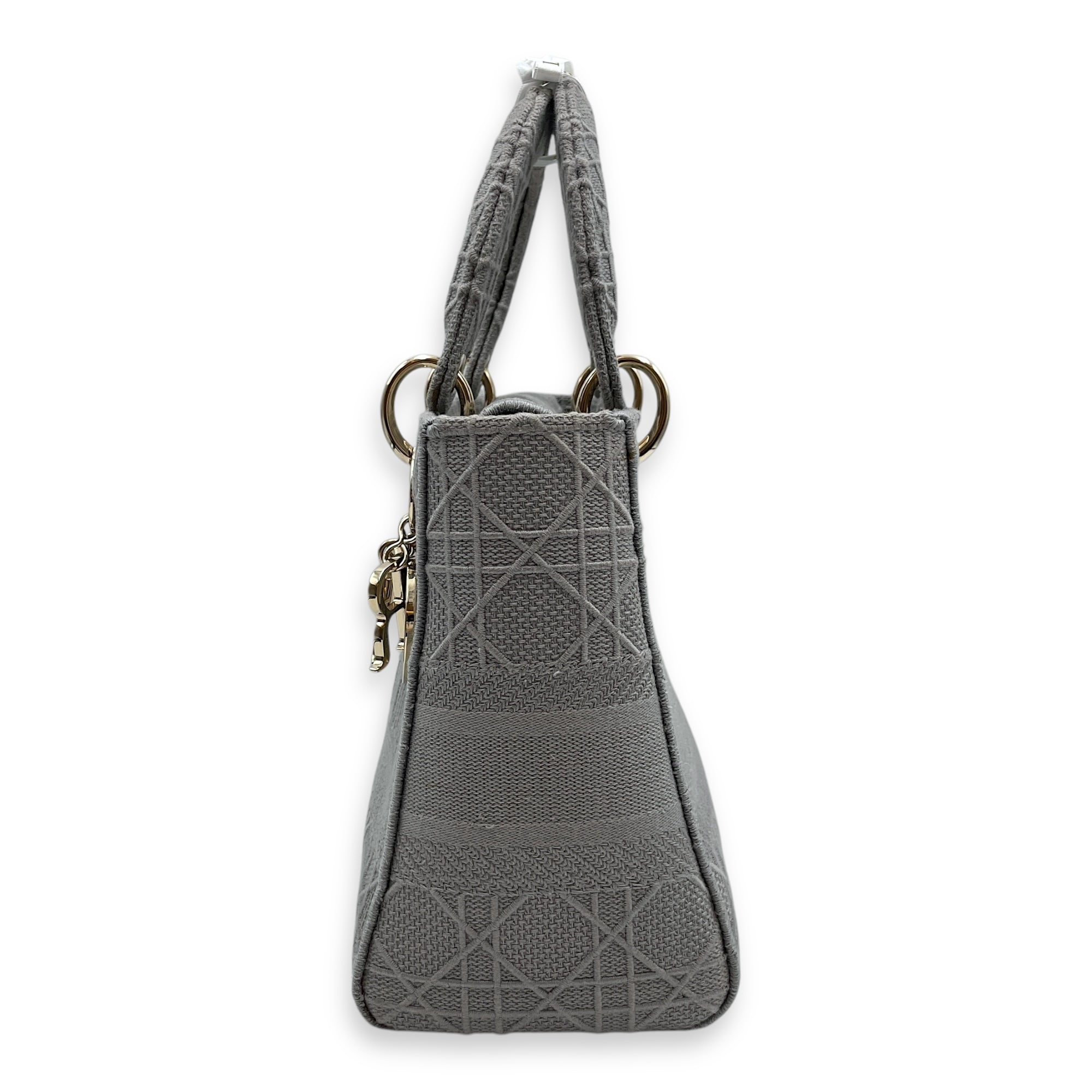 Lady Dior Medium Grey Top Handle Bag in Canvas, Gold hardware