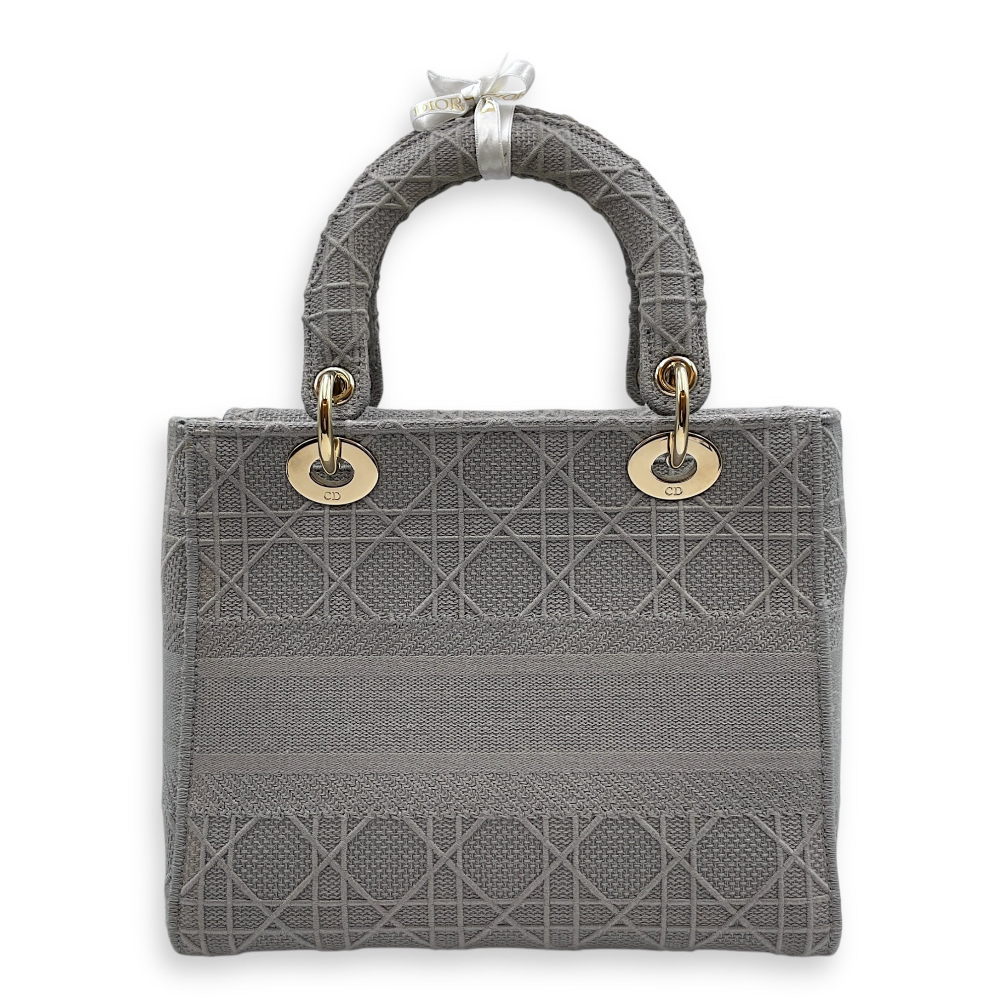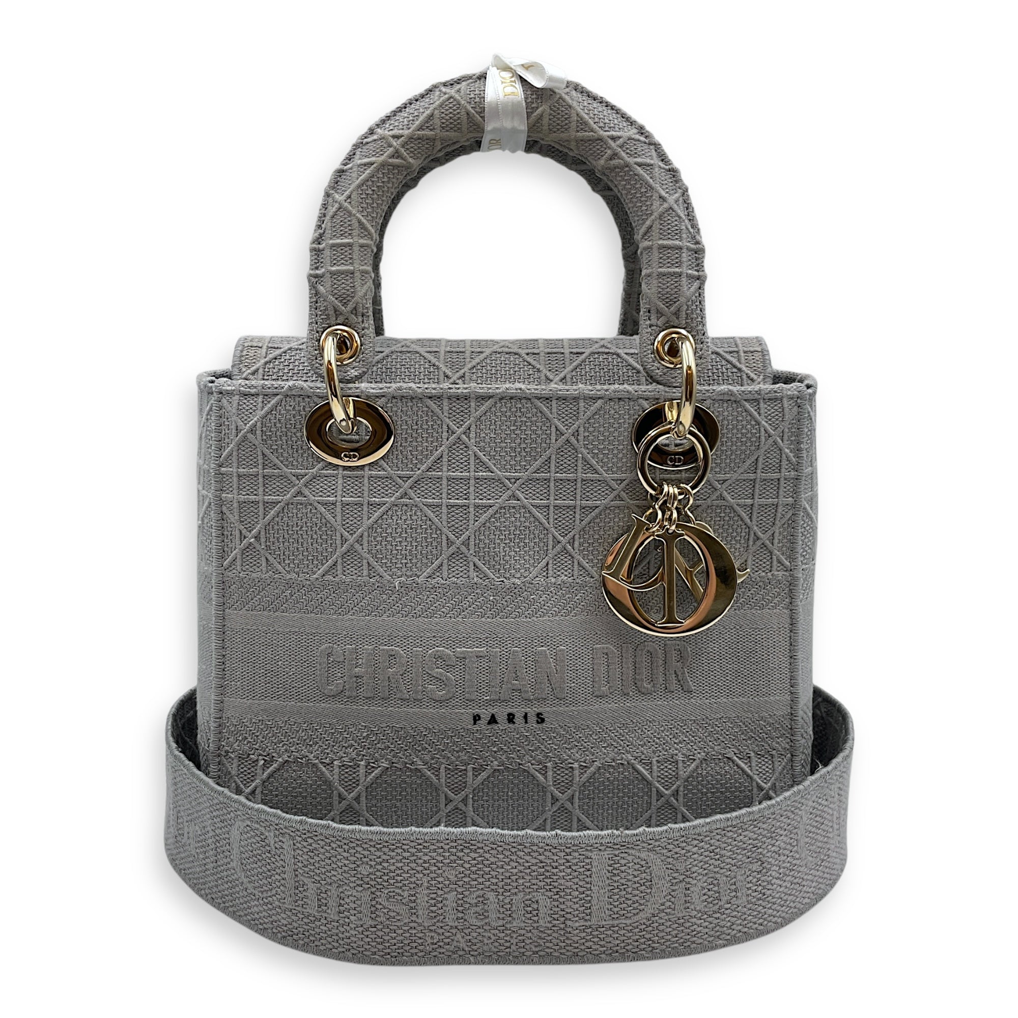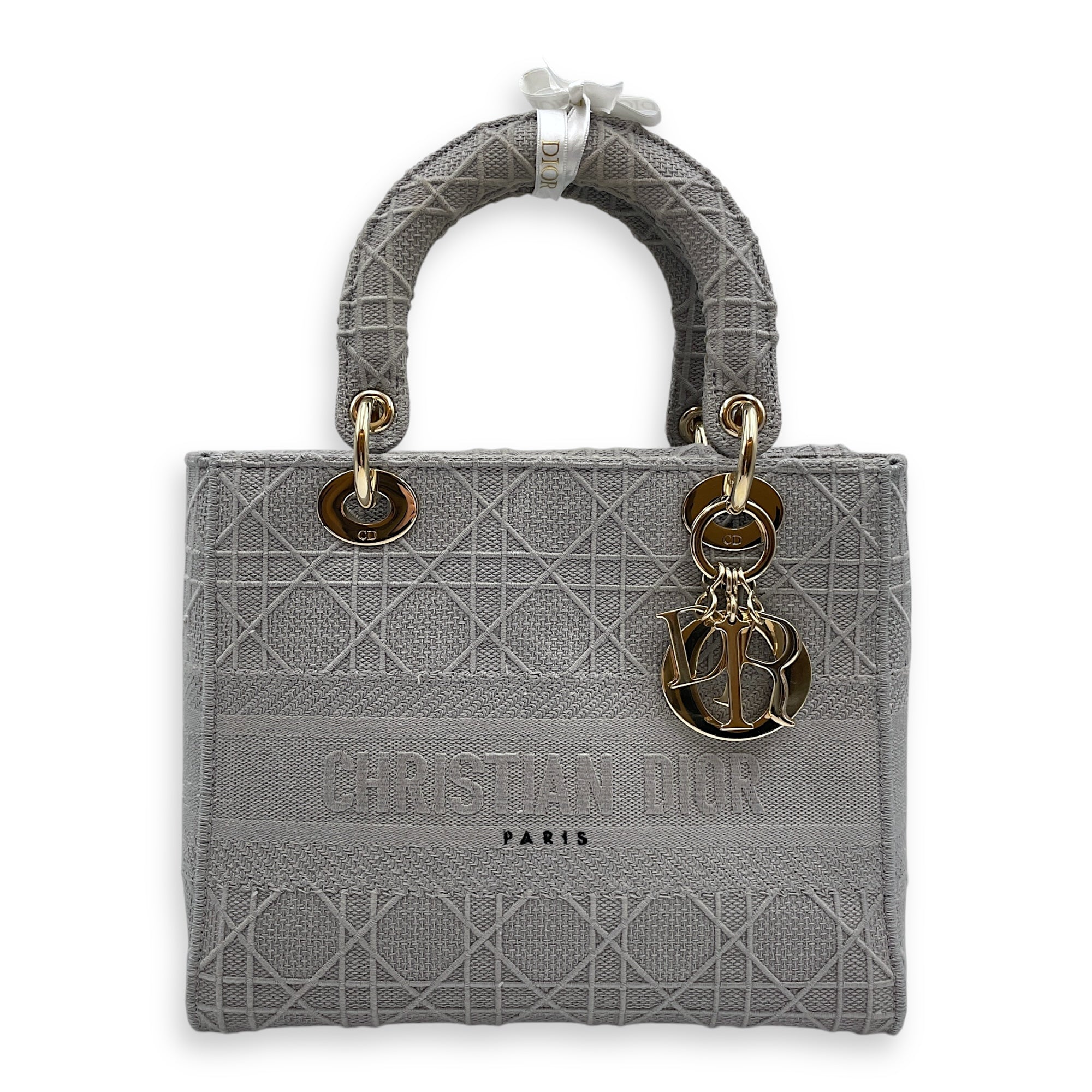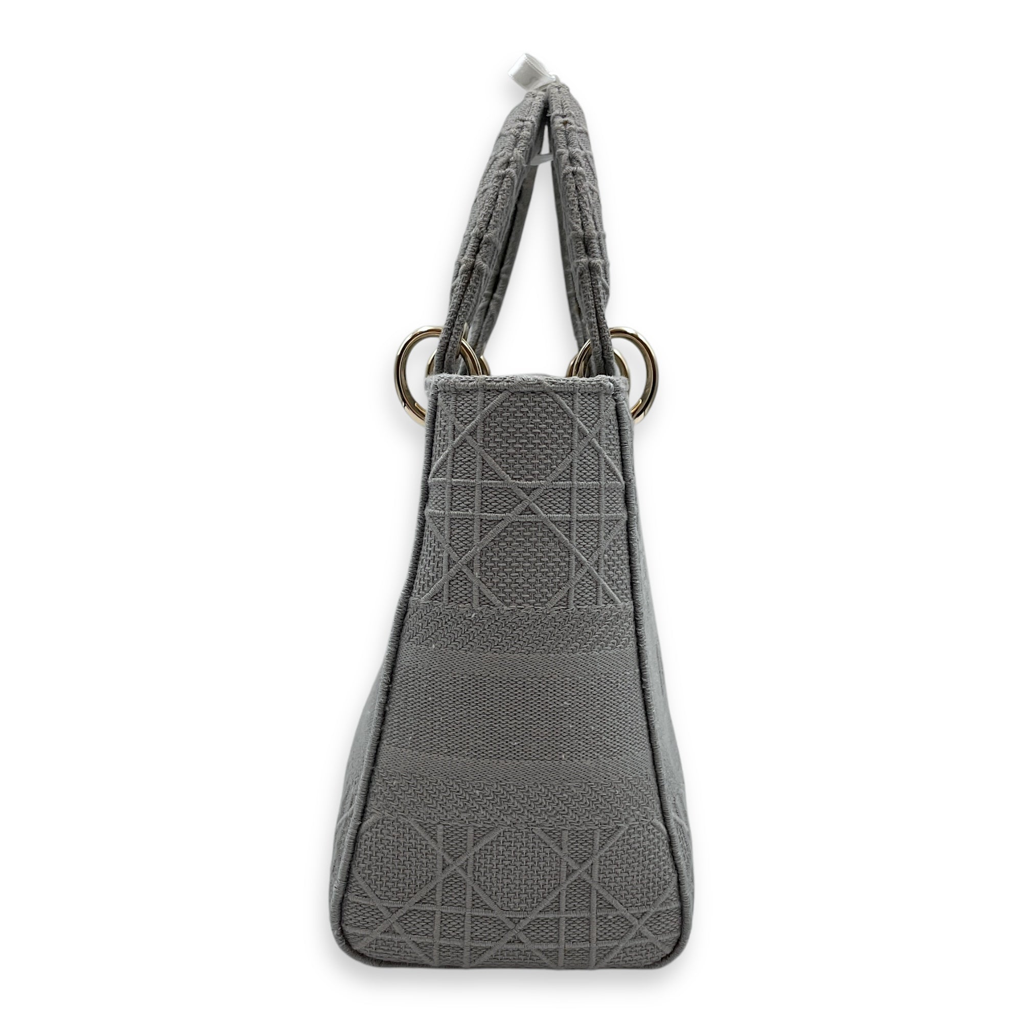 Lady Dior Medium Grey Top Handle Bag in Canvas, Gold hardware