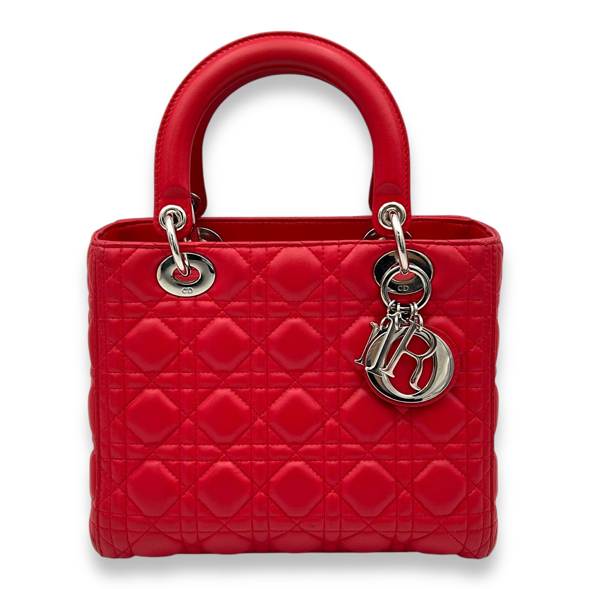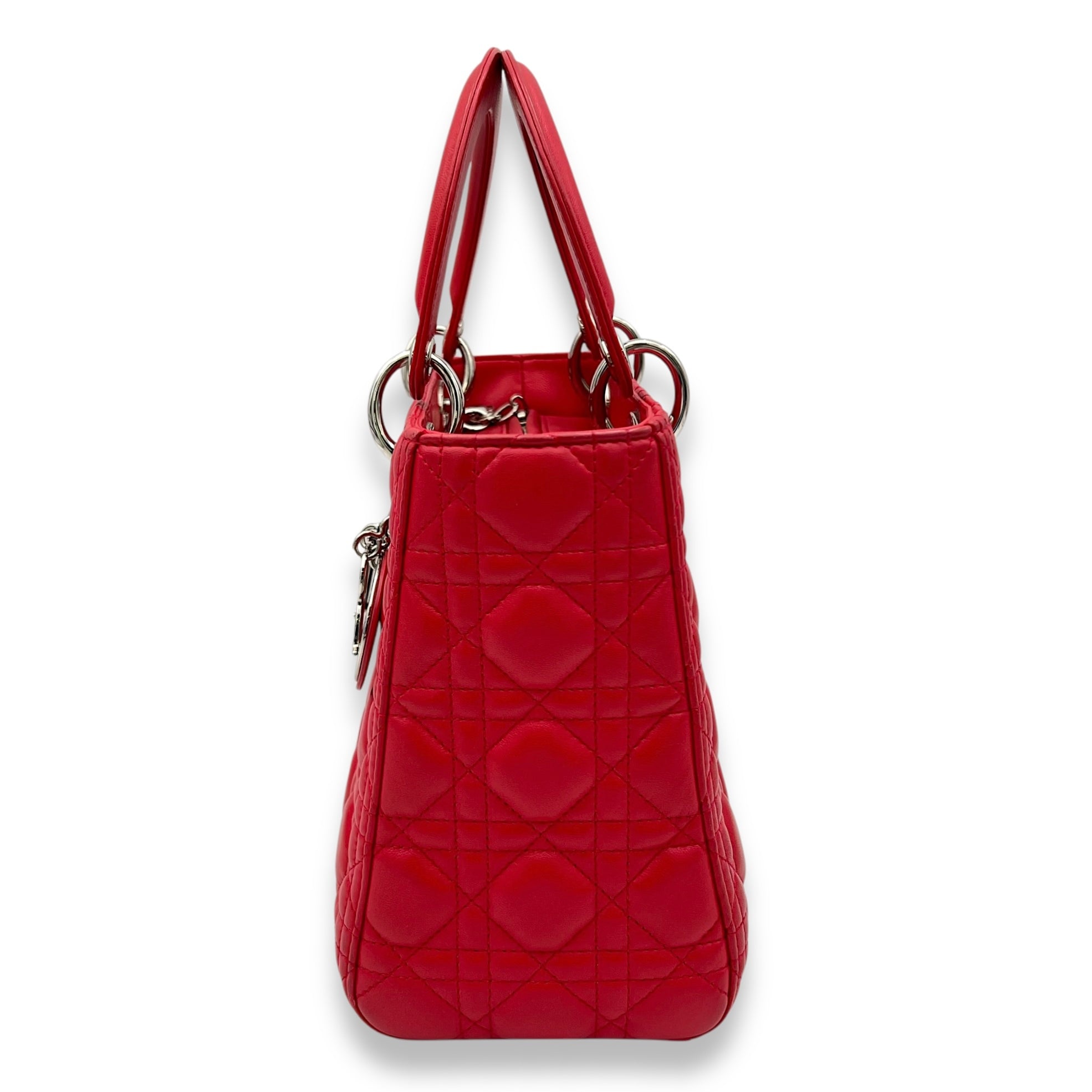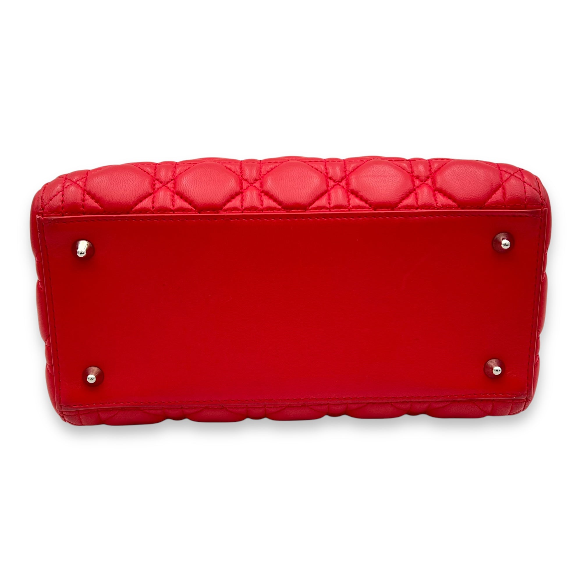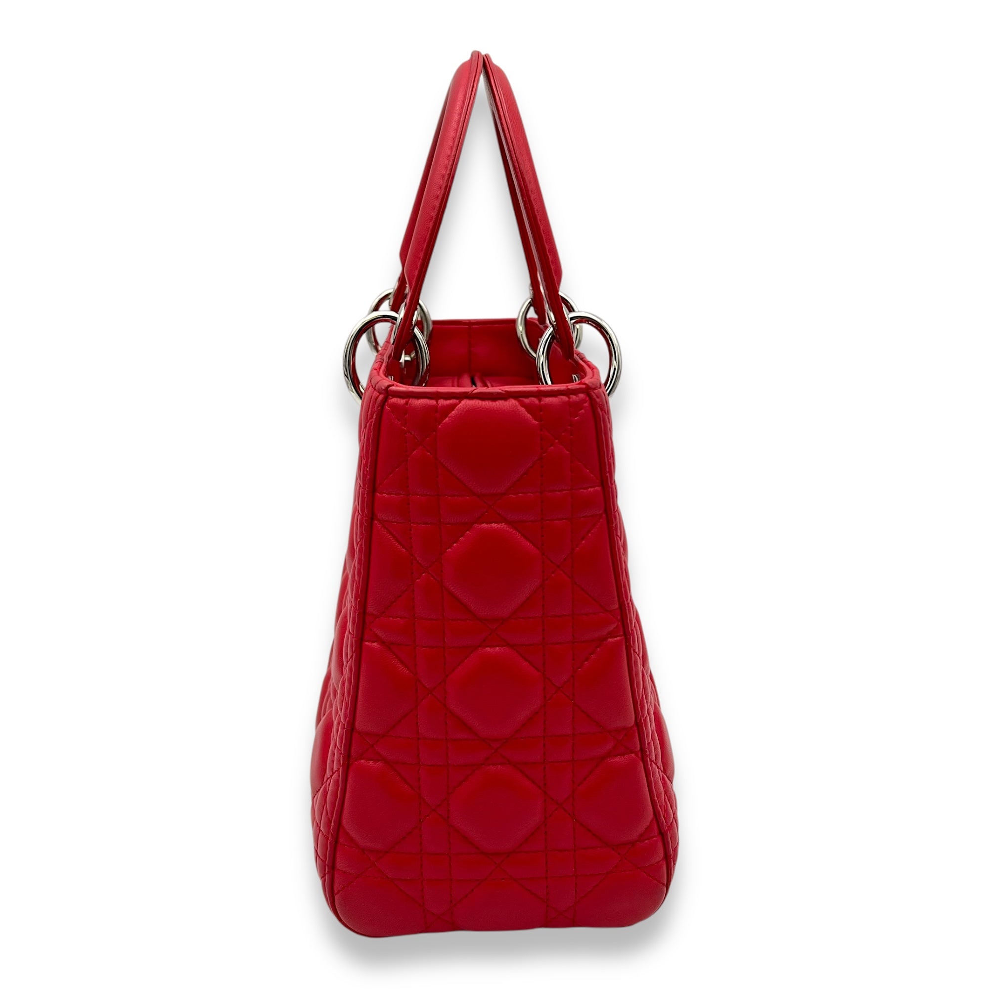 Lady Dior Medium Red Top Handle Bag in Lambskin, Silver hardware