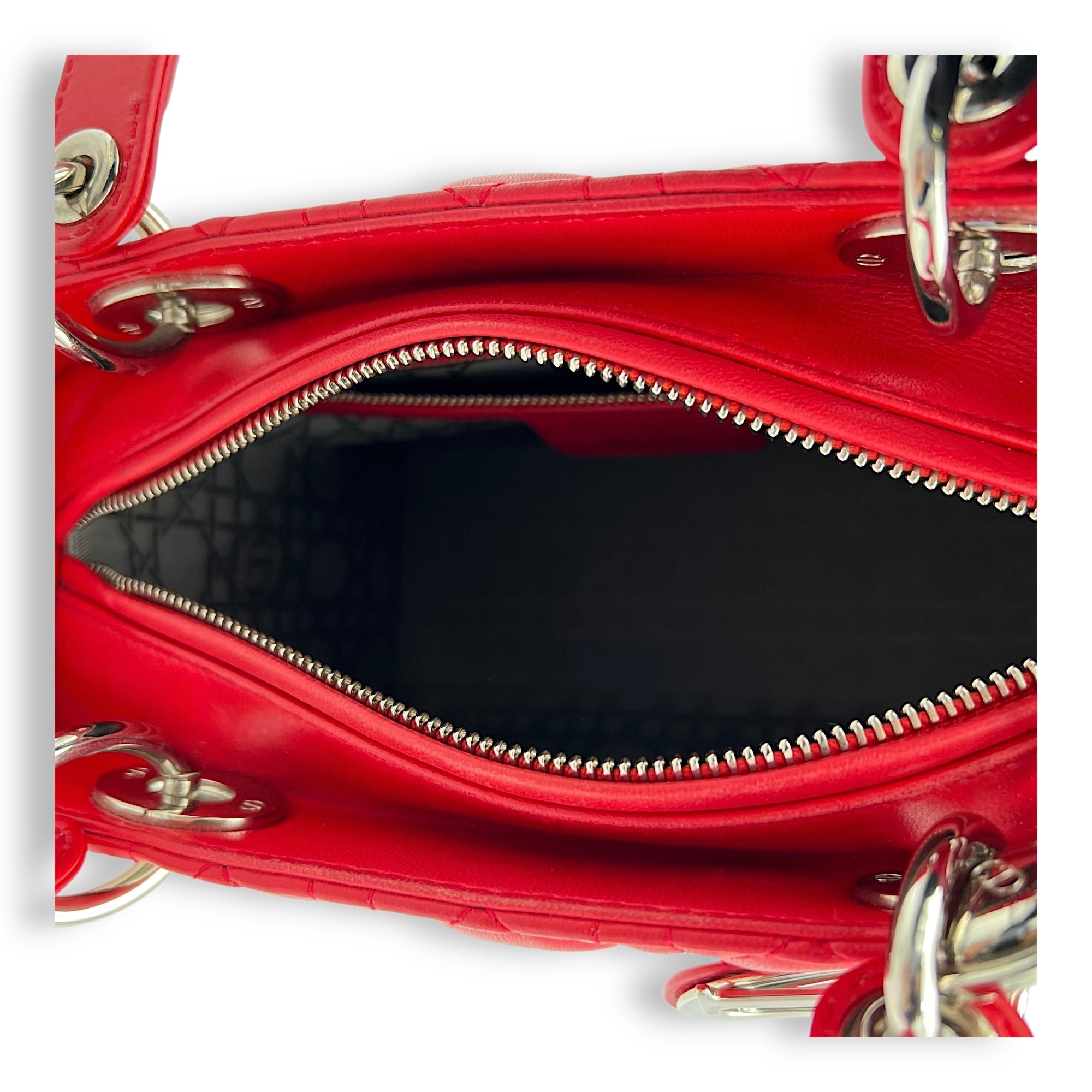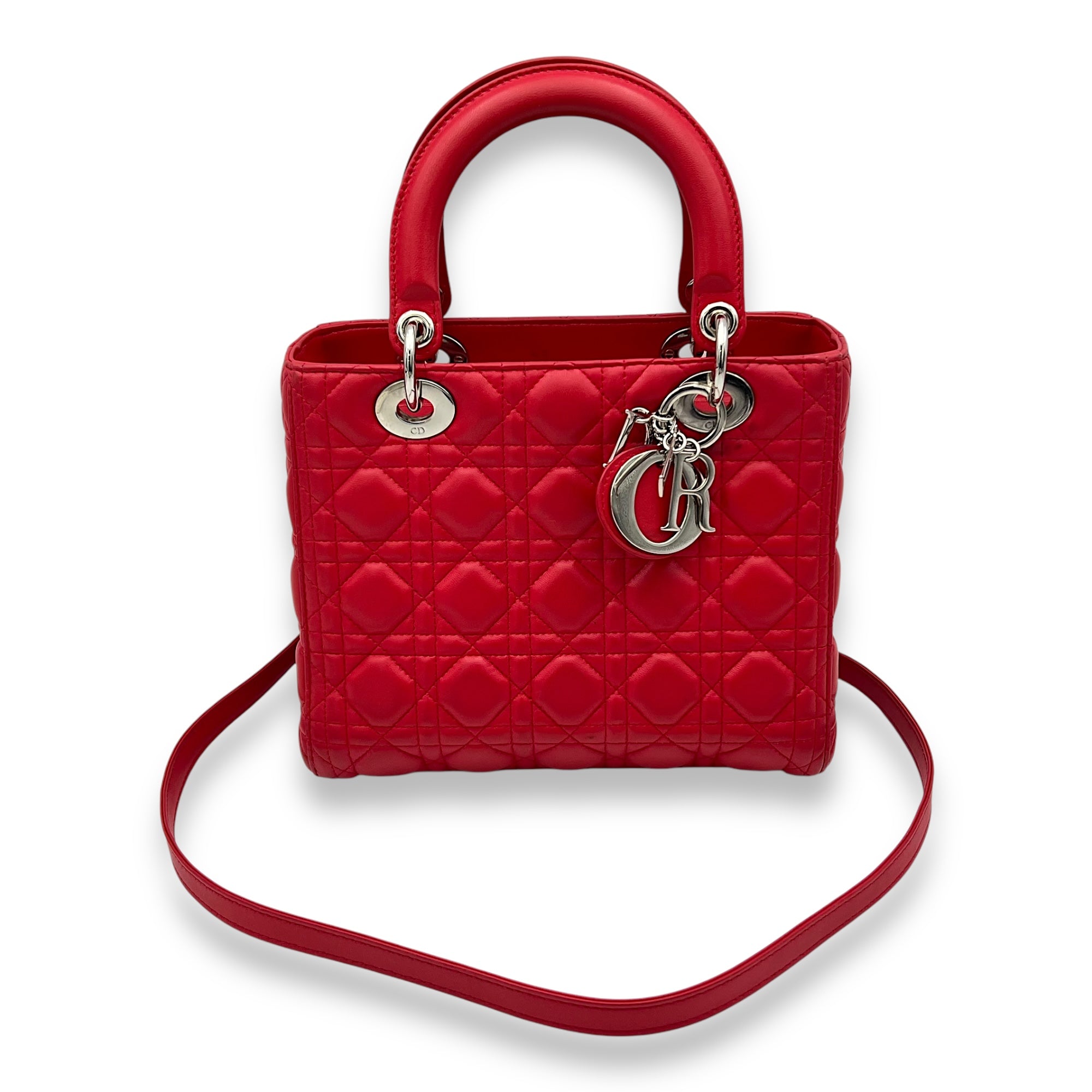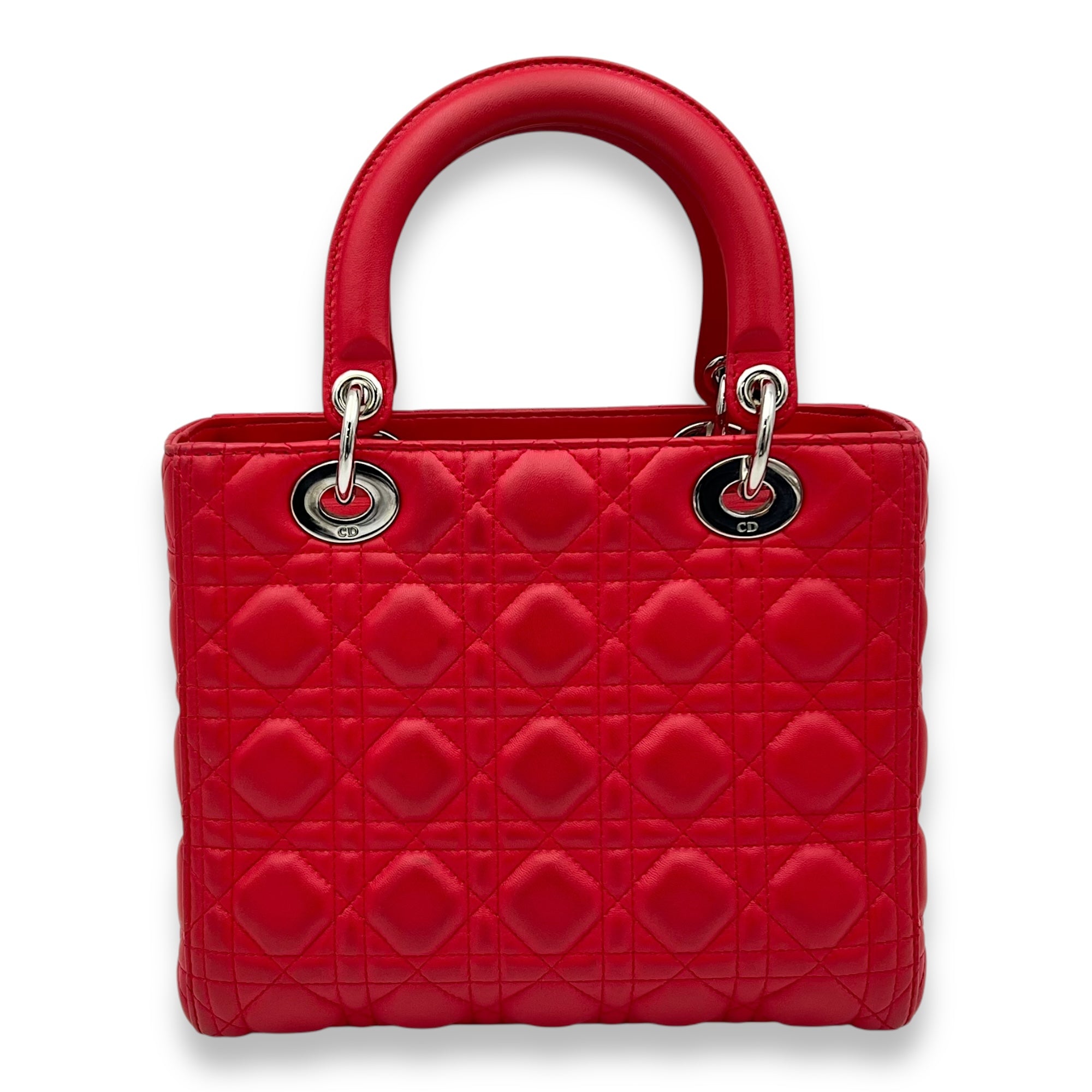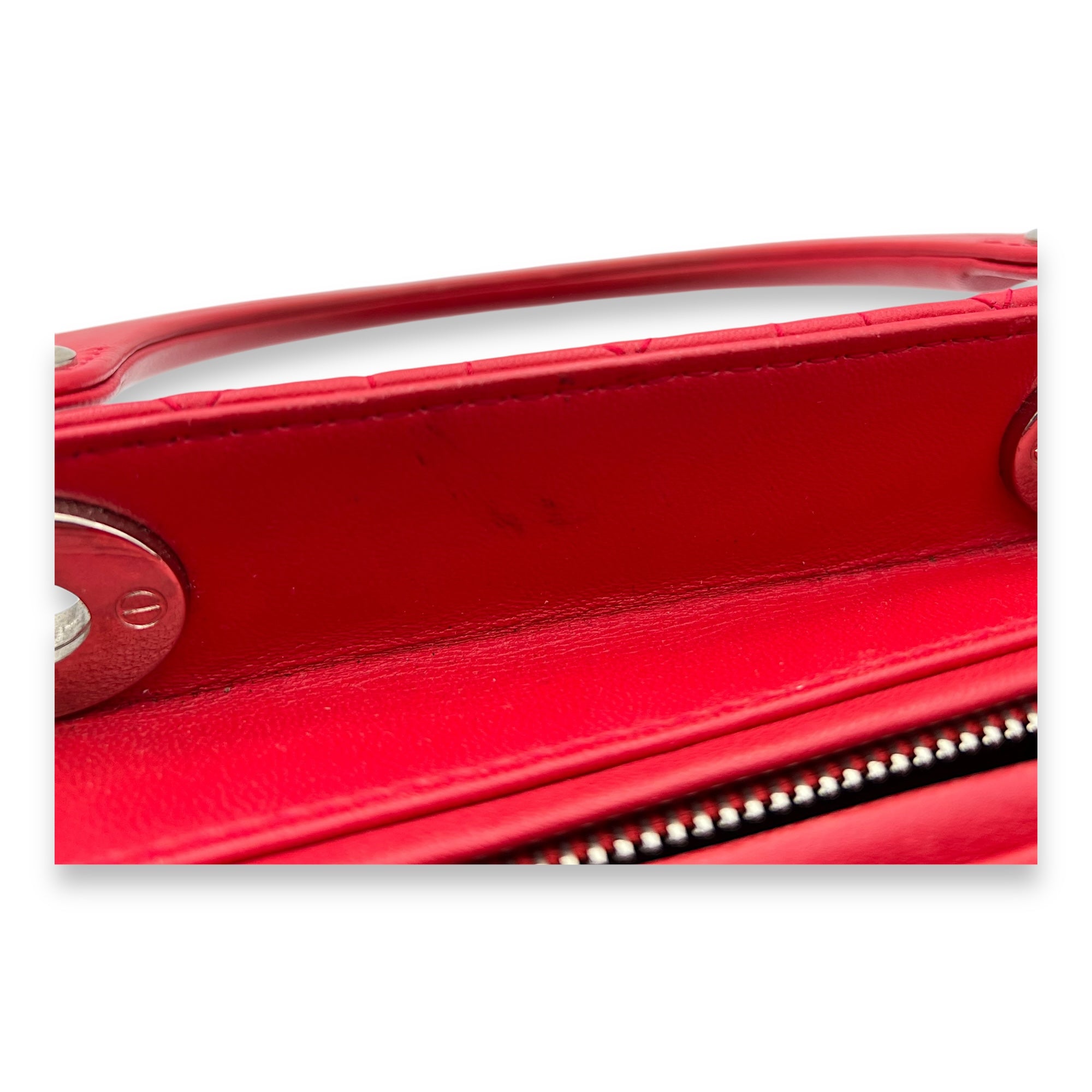 Lady Dior Medium Red Top Handle Bag in Lambskin, Silver hardware