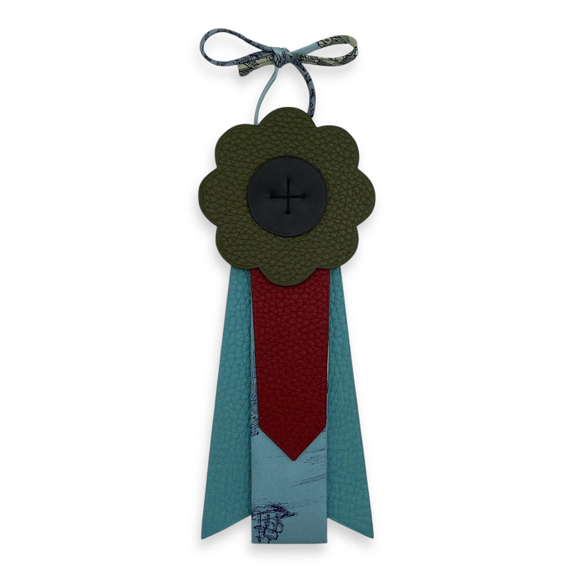 Petit H Round Rosette Rouge H/Blue/Vert Bag Accessory in Clemence/Silk