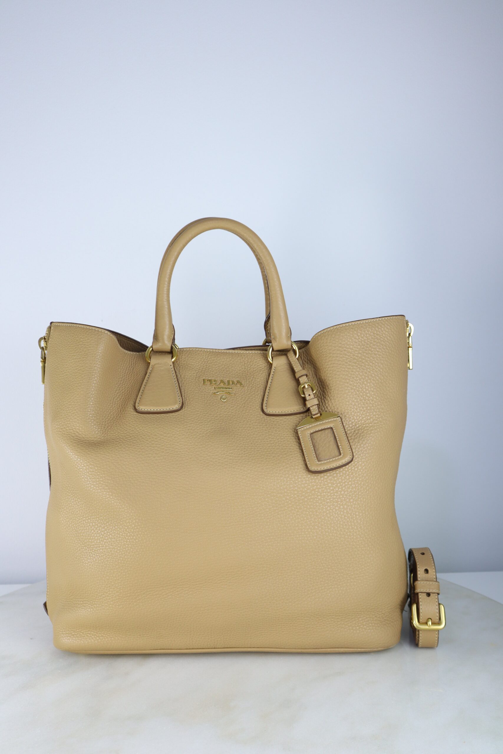Be the first to review “Prada Beige Vitello Daino Large Shopping Tote Bag W/ Strap”
