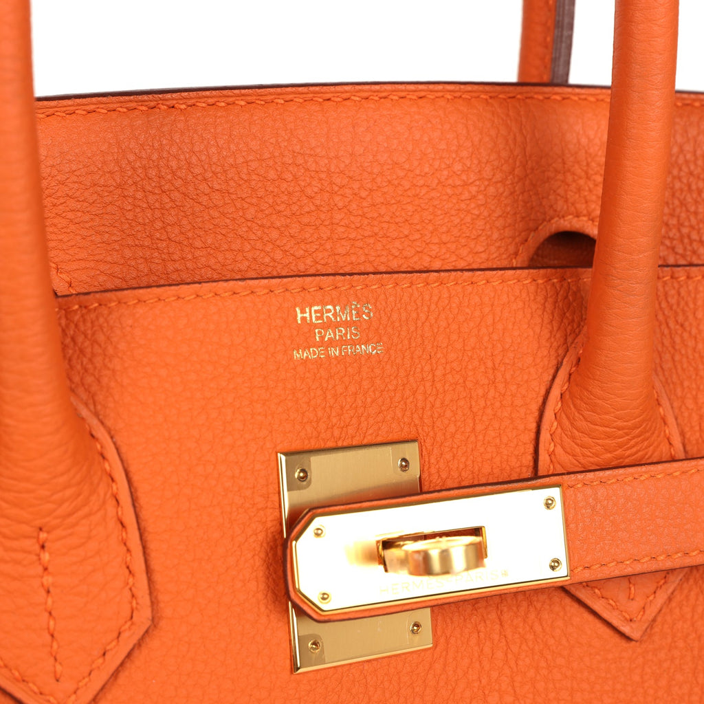 Pre-owned Hermes Birkin 30 Orange Togo Gold Hardware Shop for an authentic pre-owned Hermes Birkin 30 in Orange togo leather with gold hardware in mint condition at Madison Avenue Couture.