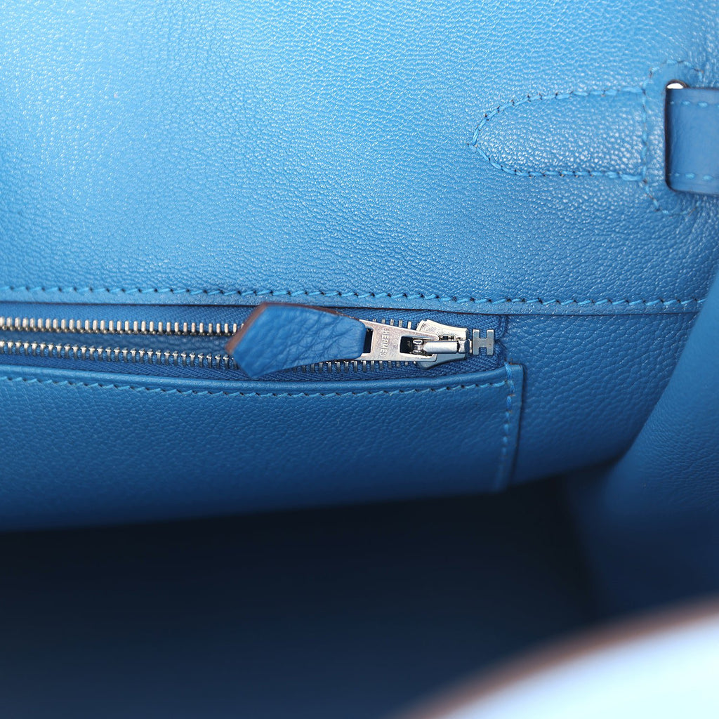 Pre-owned Hermes Birkin 35 Mykonos Togo Palladium Hardware Shop for an authentic pre-owned Hermes Birkin 35 in Mykonos togo leather with palladium hardware in excellent condition at Madison Avenue Couture.