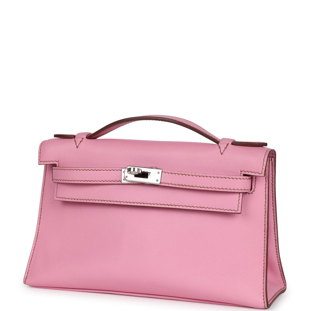 Pre-owned Hermes Kelly Pochette Bubblegum Swift Palladium Hardware Shop an authentic pre-owned Hermes Kelly Pochette in Bubblegum swift leather with palladium hardware in excellent to mint condition at Madison Avenue Couture.