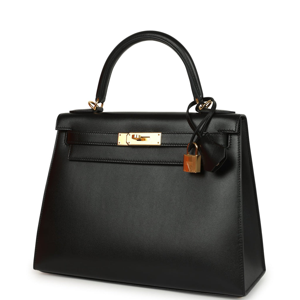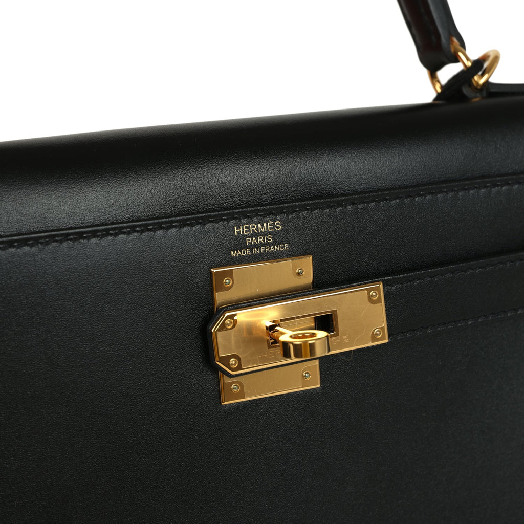 Pre-owned Hermes Kelly Sellier 28 Black Tadelakt Gold Hardware Shop for an authentic pre-owned Hermes Kelly Sellier 28 in Black Tadelakt leather with gold hardware in mint condition at Madison Avenue Couture.