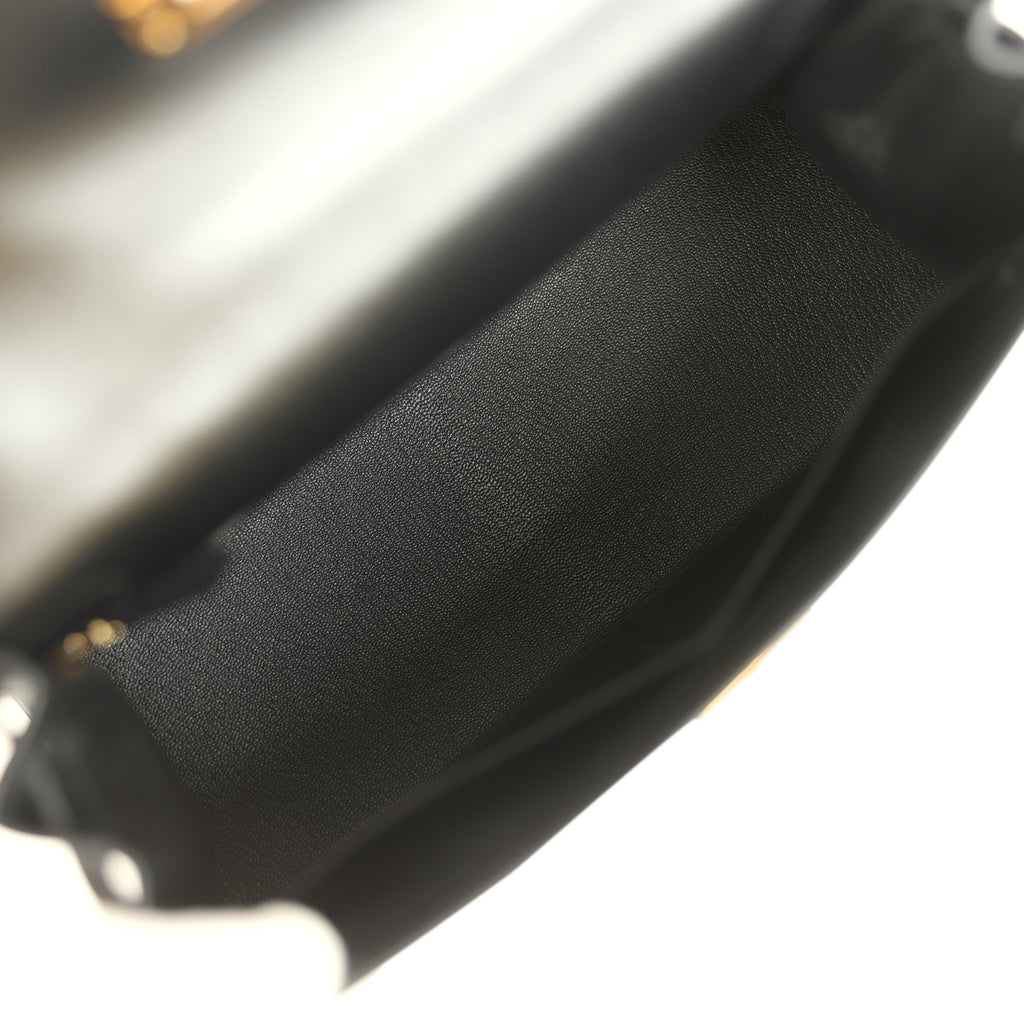 This Kelly, in the Sellier style, is in Black Tadelakt calfskin leather with gold hardware and has tonal stitching, two straps with front toggle closure, clochette with lock and two keys, single rolled handle and removable shoulder strap.The interior is lined with Black chevre leather and has one zip pocket with an Hermes engraved pull and two open pockets on the opposite side.Collection: U (2022)Origin: FranceCondition: Pre-owned; Mint – This bag retains its shape structure. There is partial plastic on the hardware. resulting in hairline scratches to the exposed hardware except for the shoulder strap clasps which have more noticeable scratching. The exterior leather is clean with the exception of a faint mark to the clochette. The interior leather is clean with minimal signs of wear.Accompanied by: Hermes box (pre-owned), Hermes dustbag, clochette, lock, two keys, clochette dustbag, shoulder strap, shoulder strap dustbag, rainhat, carebookMeasurements: 11.25″ width x 8.25″ height x 4.75″ depth; 3.5″ handle drop (16.5″ shoulder strap drop)