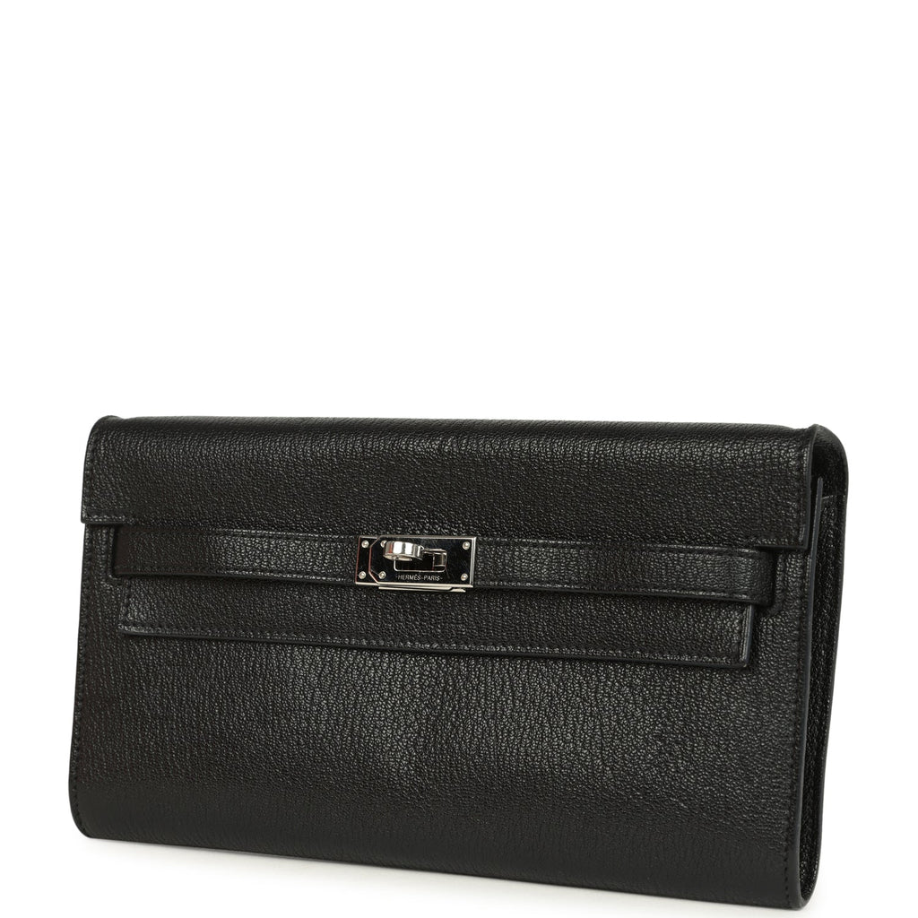 Pre-owned Hermes Kelly Wallet To Go Black Chevre Mysore Palladium Hardware Shop for an authentic pre-owned Hermes Kelly Wallet To Go in Black Chevre Mysore leather with palladium hardware in excellent condition at Madison Avenue Couture.