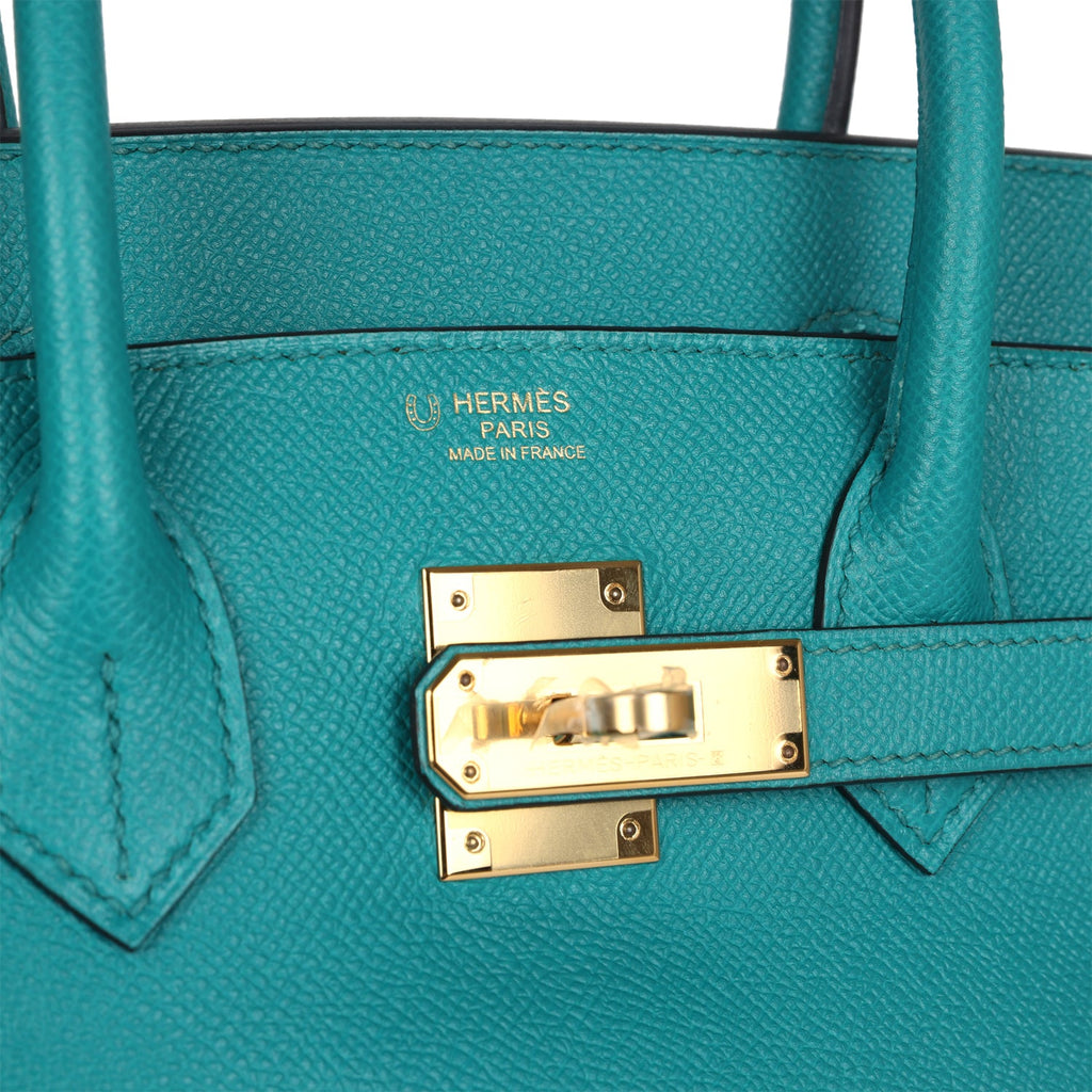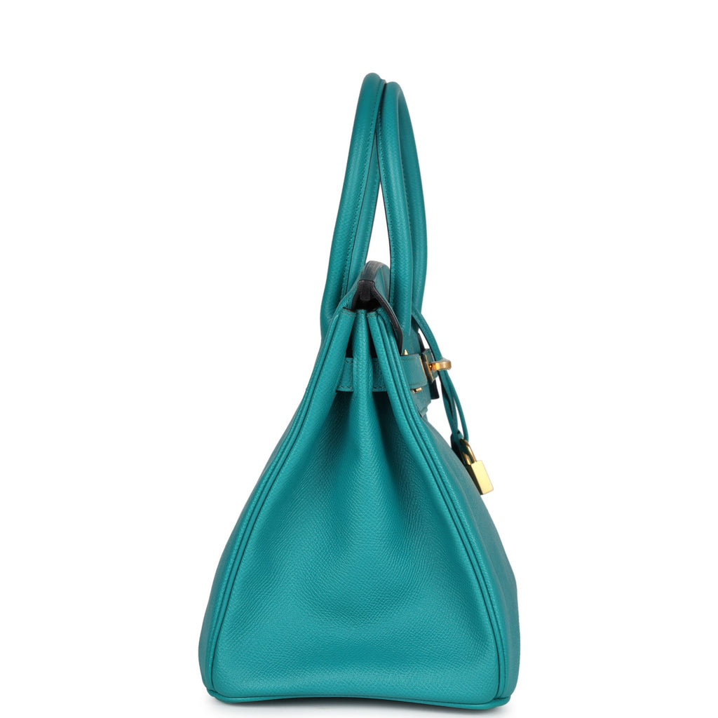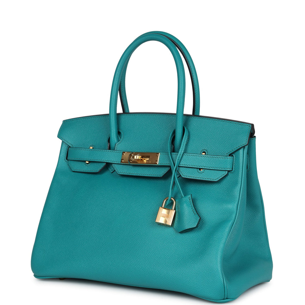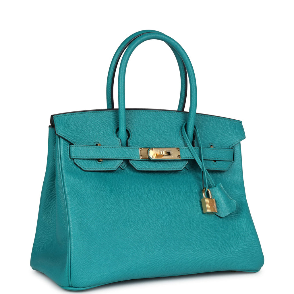 Pre-owned Hermes Special Order (HSS) Birkin 30 Bleu Paon Epsom Gold Hardware Shop for an authentic pre-owned Hermes Birkin 30 in Bleu Paon epsom leather with gold hardware in mint condition at Madison Avenue Couture.