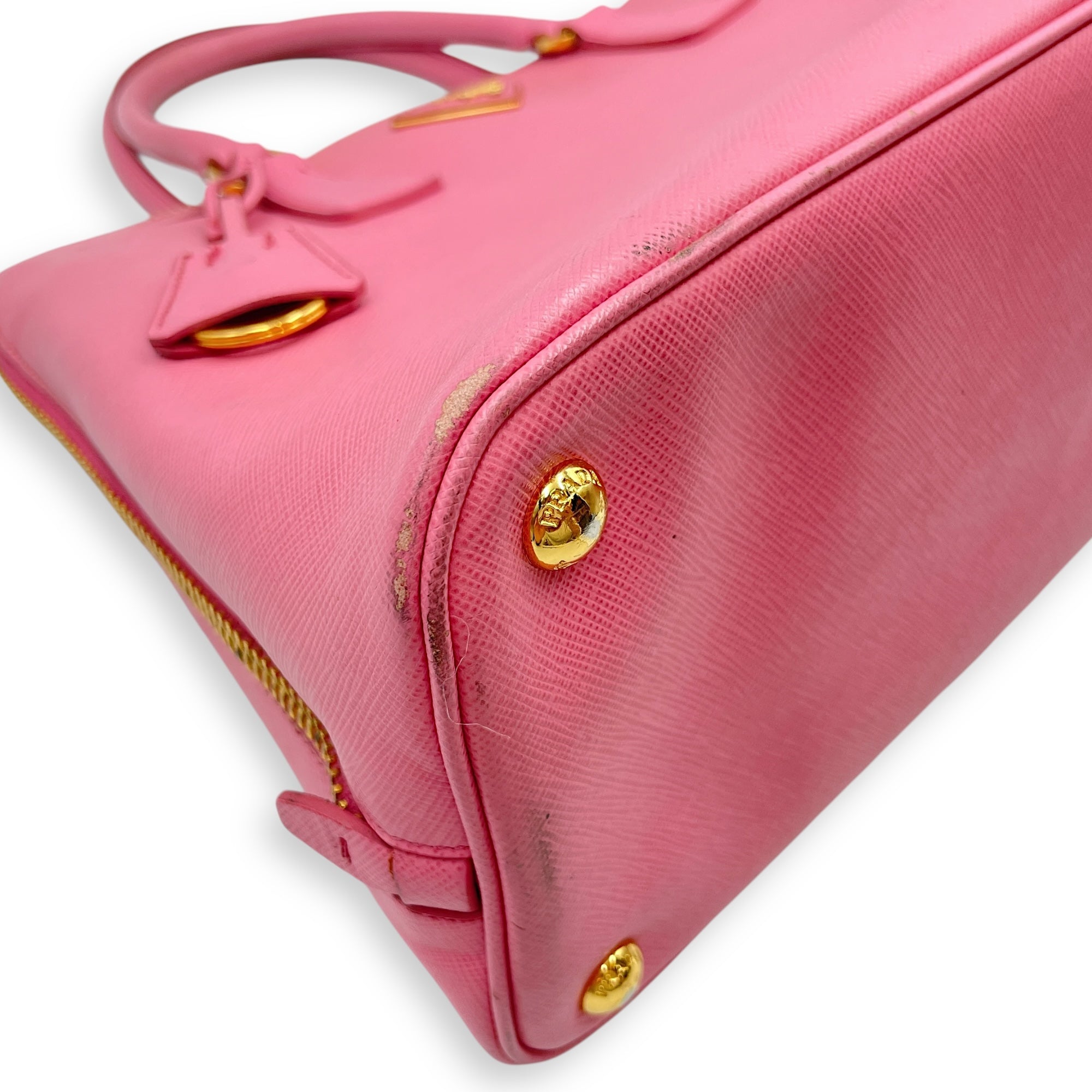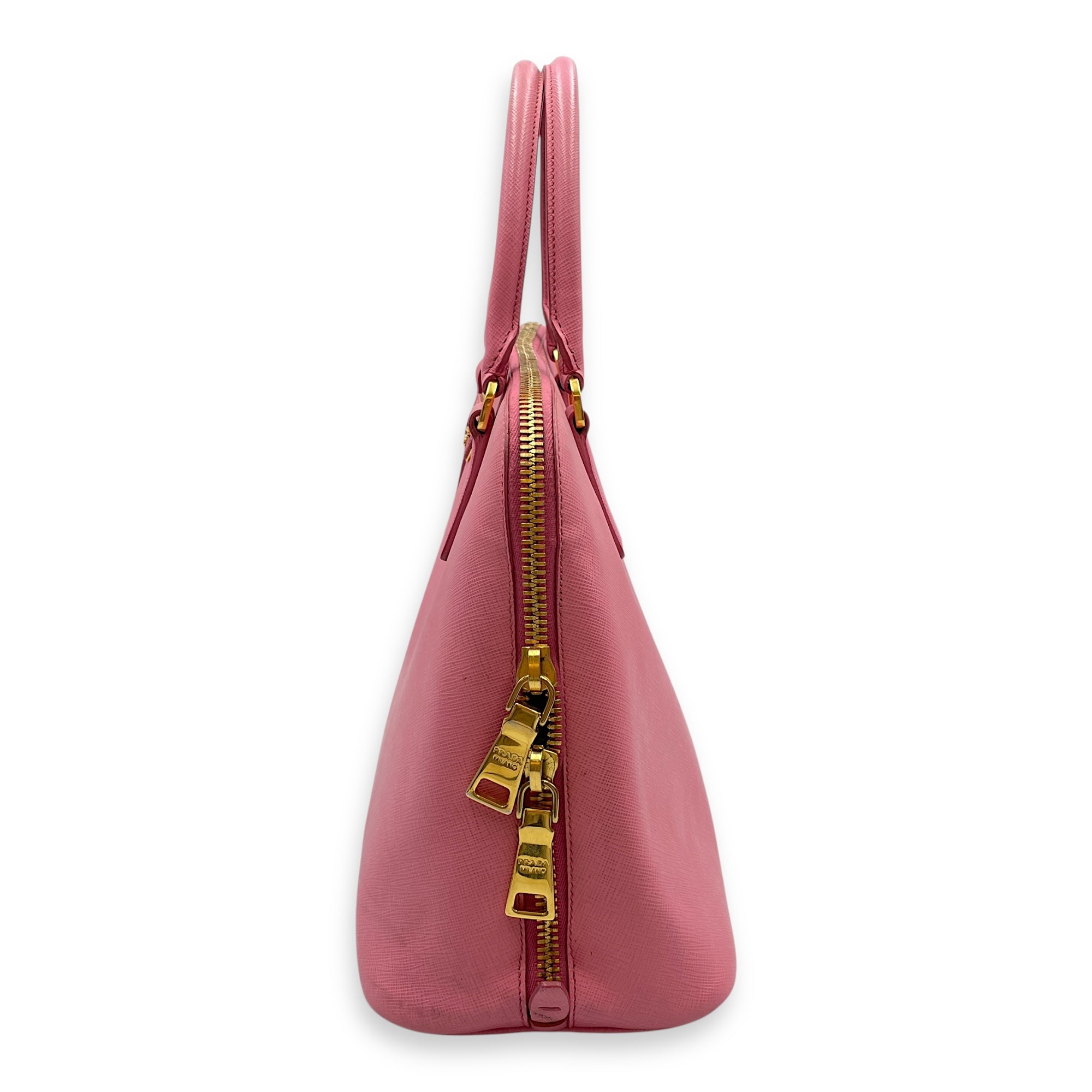 Promenade Pink Top Handle Bag in Saffiano Leather, Gold hardware