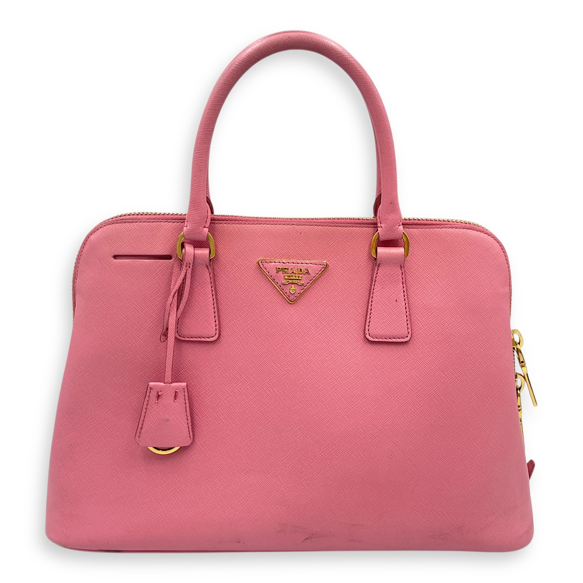 Be the first to review “Promenade Pink Top Handle Bag in Saffiano Leather, Gold hardware”