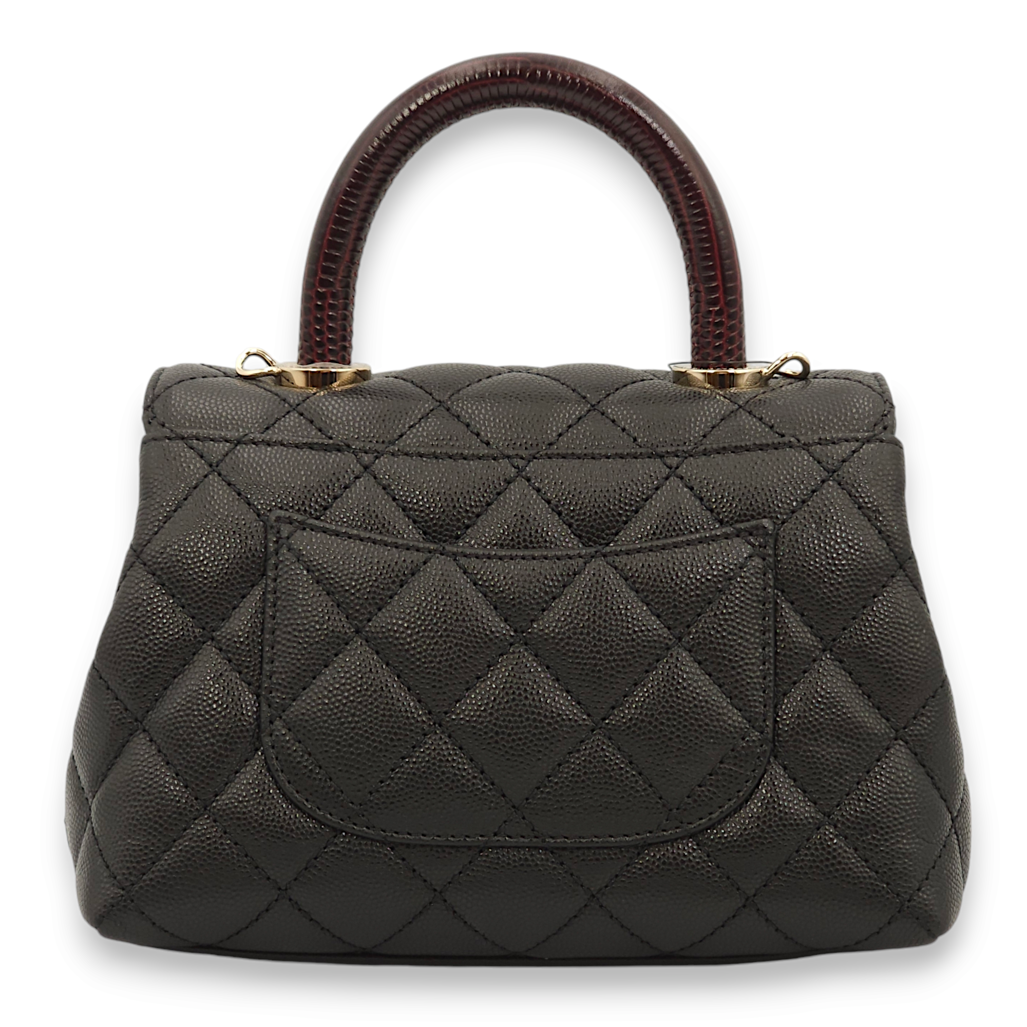 Be the first to review “Quilted Coco Handle (19cm) Mini Black/Burgundy Handle Top Handle Bag in Caviar Leather, Gold hardware”