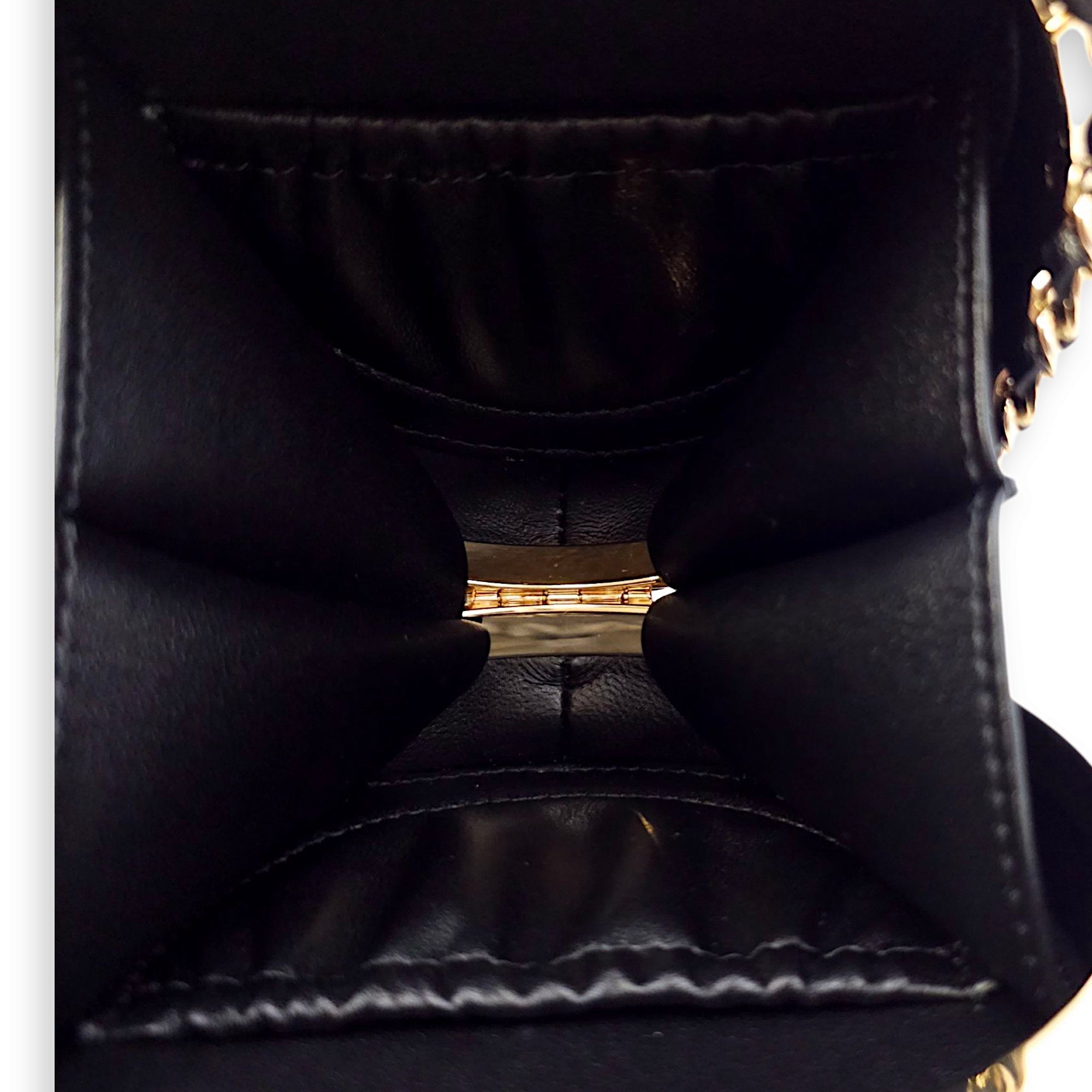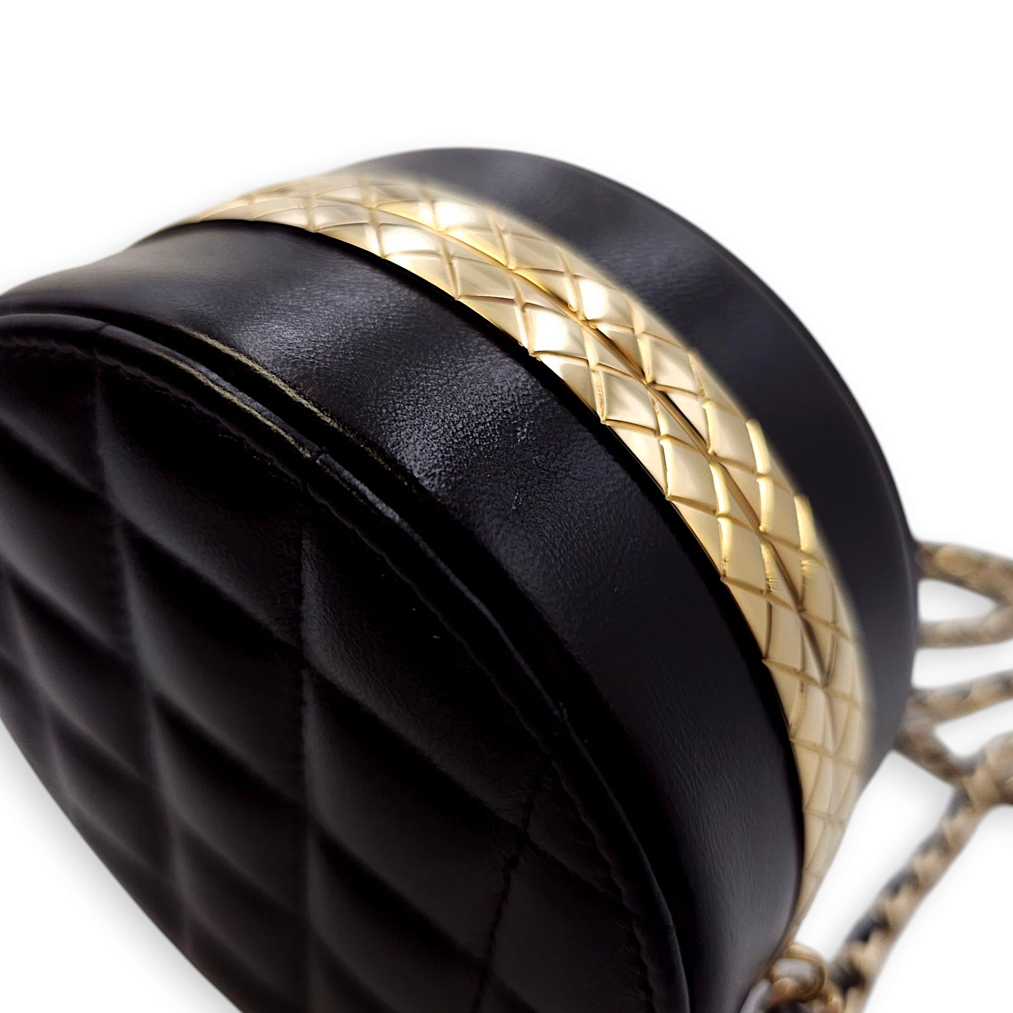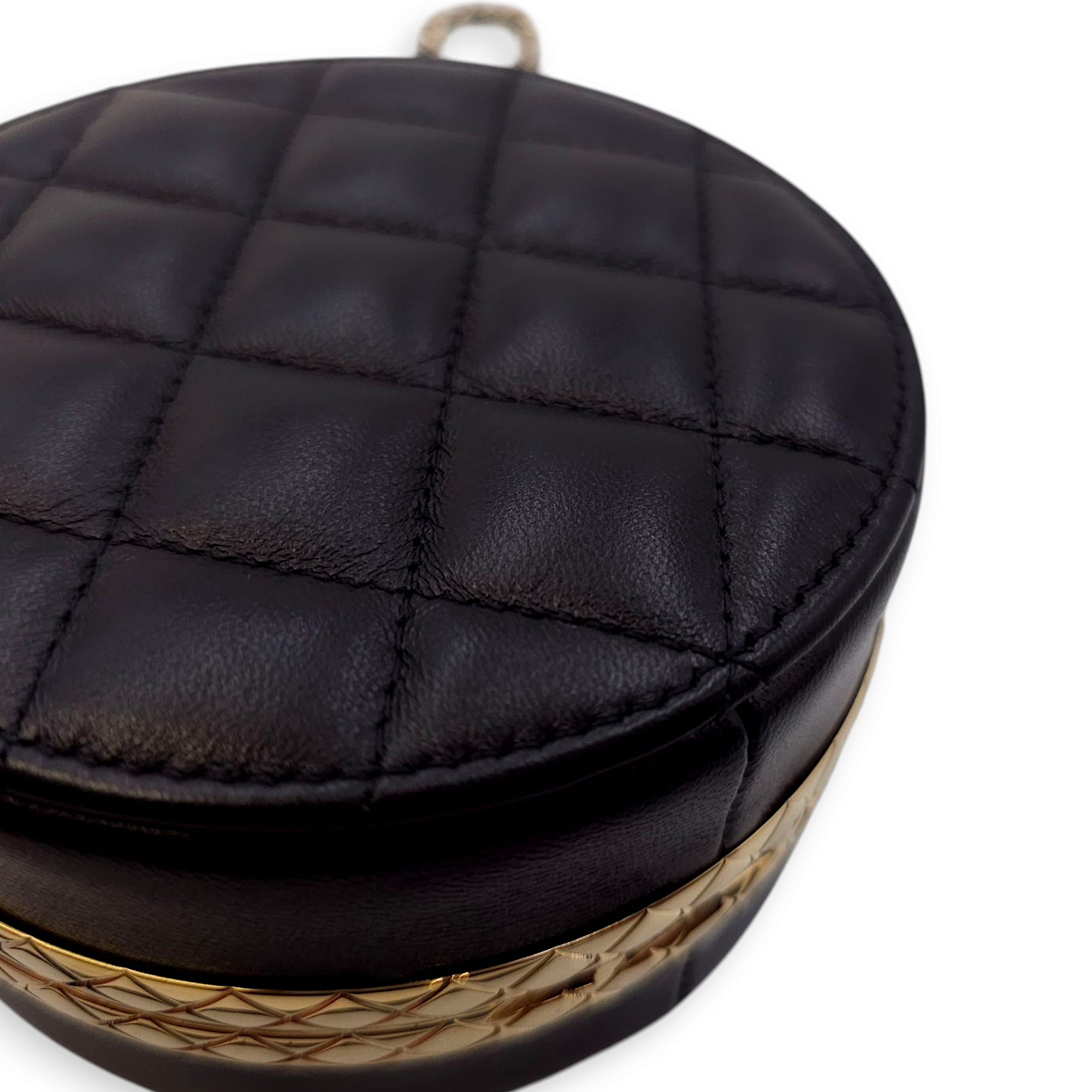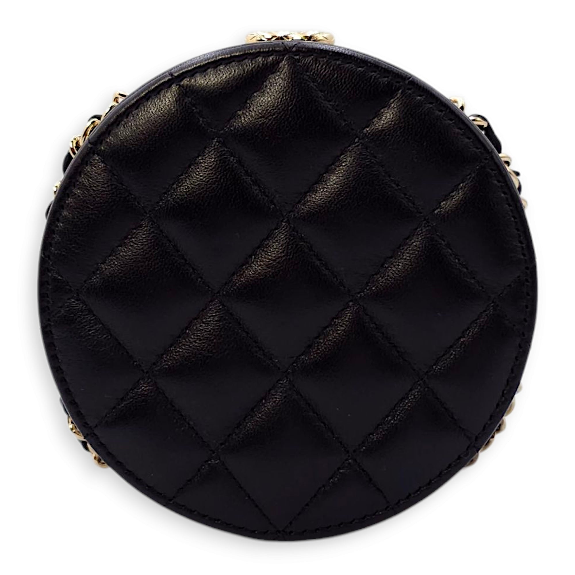 Be the first to review “Quilted Filigree Chain Around Circle Black Crossbody Bag in Lambskin, Gold hardware”