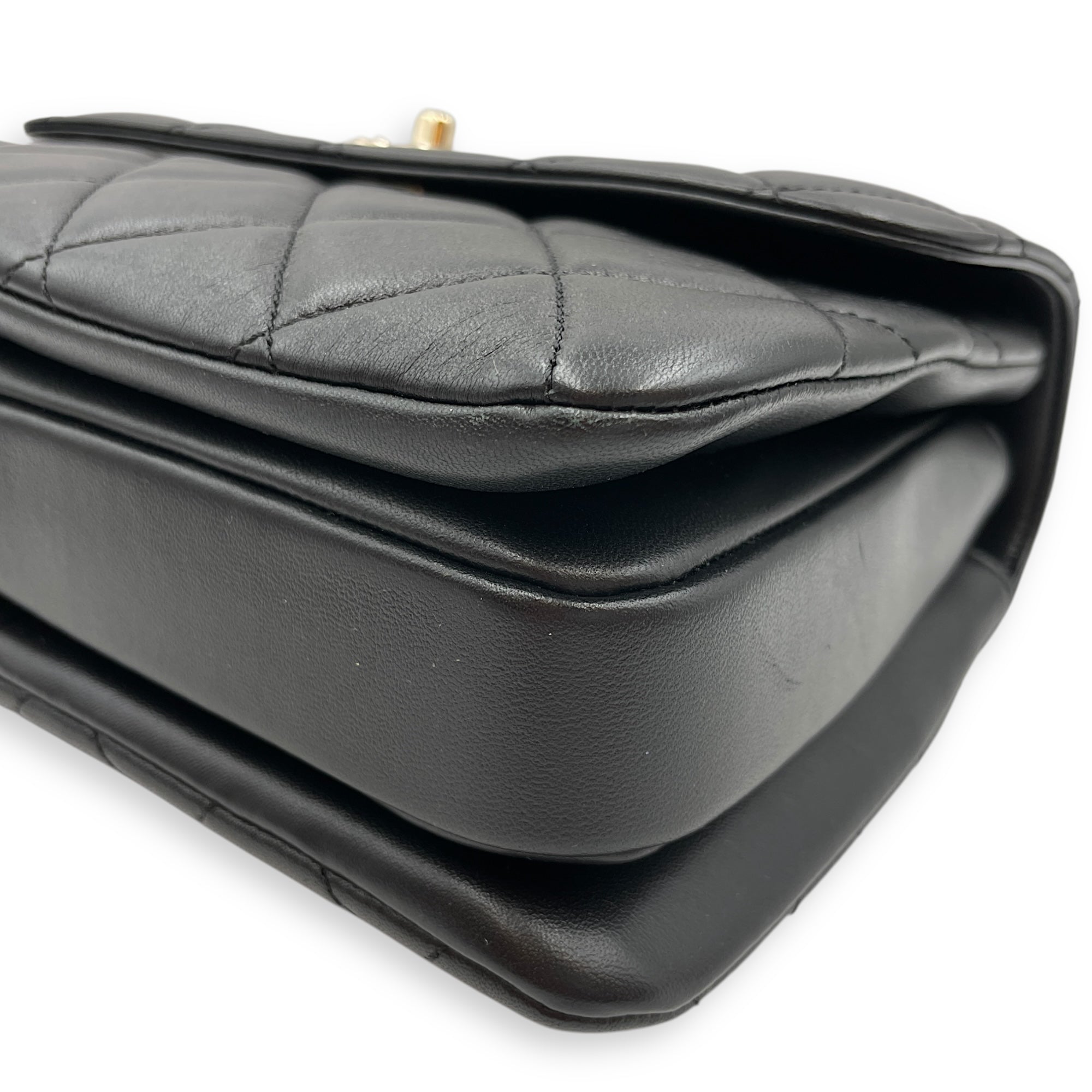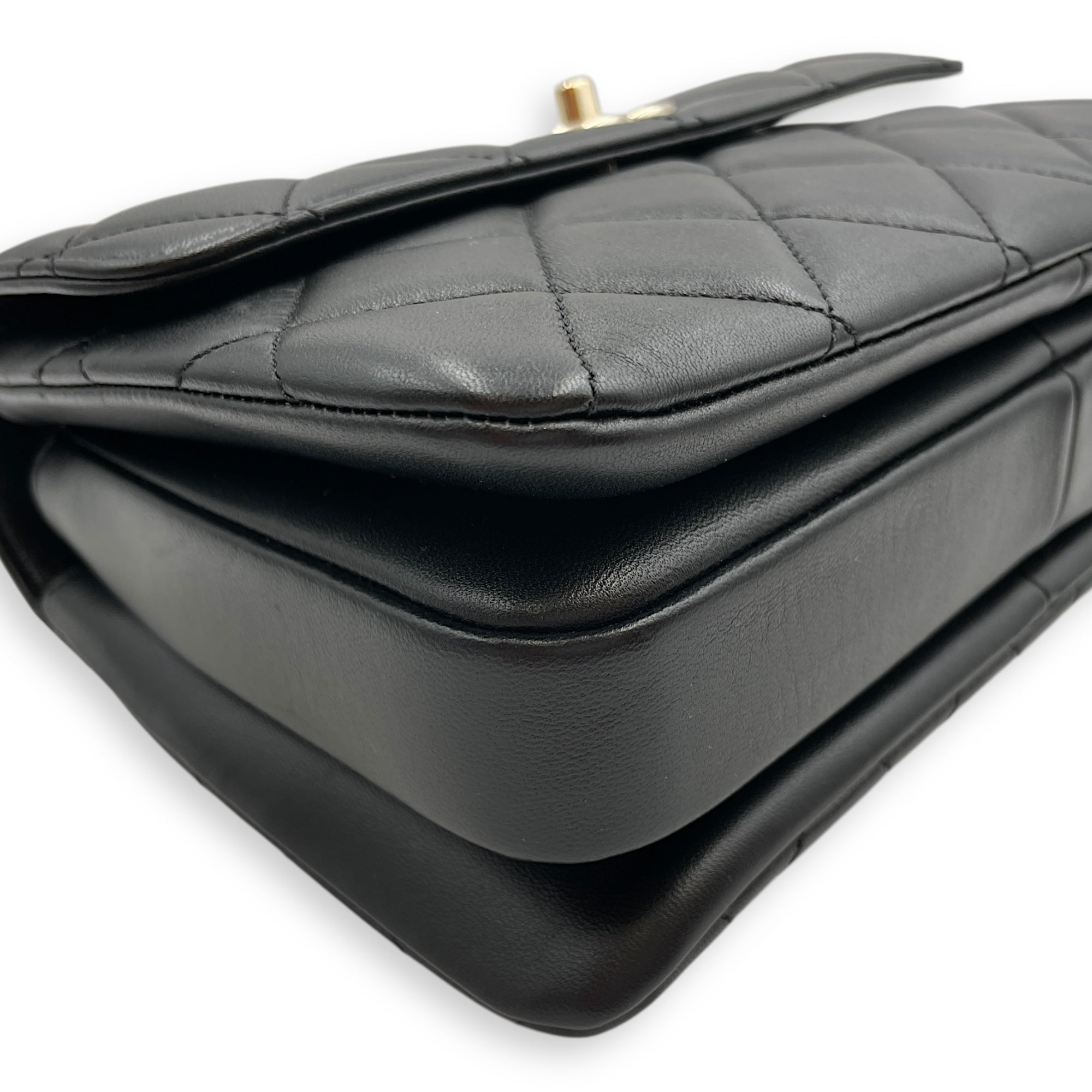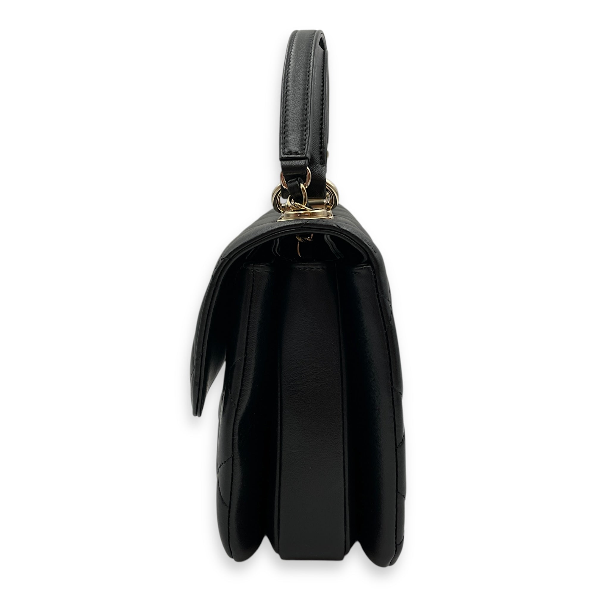 Quilted Trendy CC Black Top Handle in Lambskin, Gold hardware