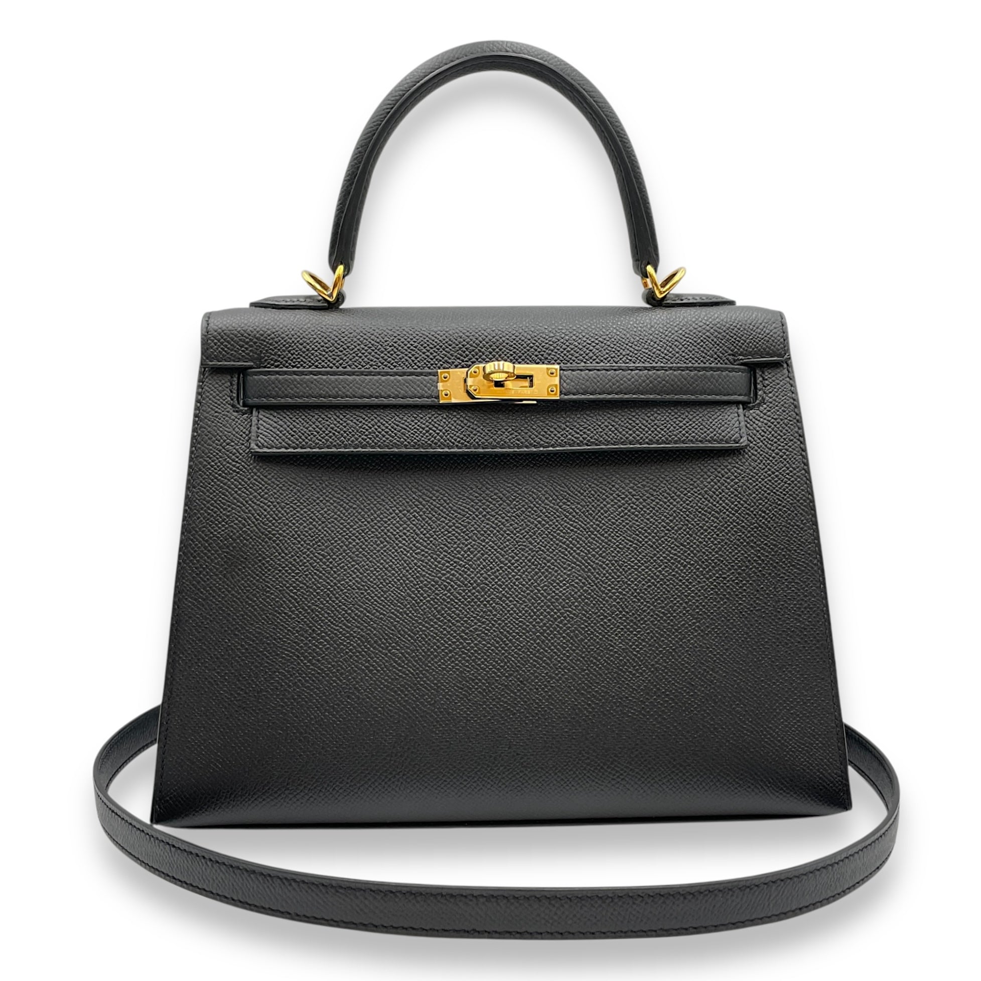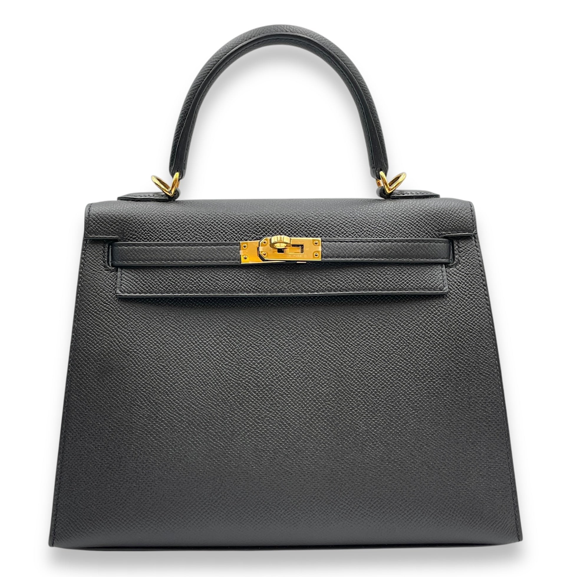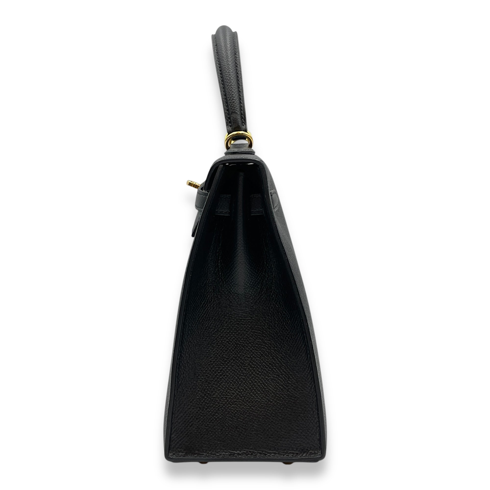 Sellier Kelly 25 Black in Epsom, Gold hardware