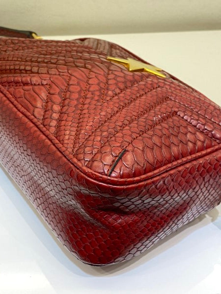 Stella Mccartney Burgundy Snakeskin Embossed Star Crossbody Bag