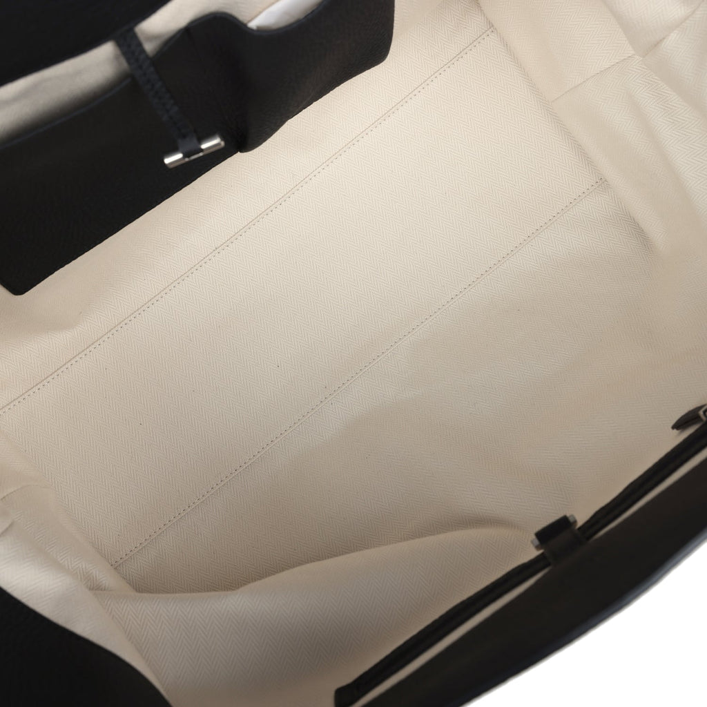 This Marlo Tote Bag is in black matte grained calfskin leather with silver hardware, featuring tonal stitching, tubular top handles, gusseted side panels, and an interior toggle closure.The interior is lined in black matte grained calfskin leather and Beige Canvas has two interior card slots and one interior zip pocket.Origin: ItalyCondition: New and never worn Accompanied by: DustbagMeasurements: 16.5″ x 13″ x 7″; Top Handles: 8″