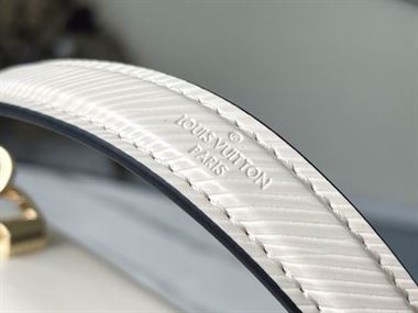 This Twist PM handbag Quartz White features a bold bright strap with “Louis Vuitton” 3-D printed on it in silicone. This bag has Epi grained leather and cowhide-leather trim.