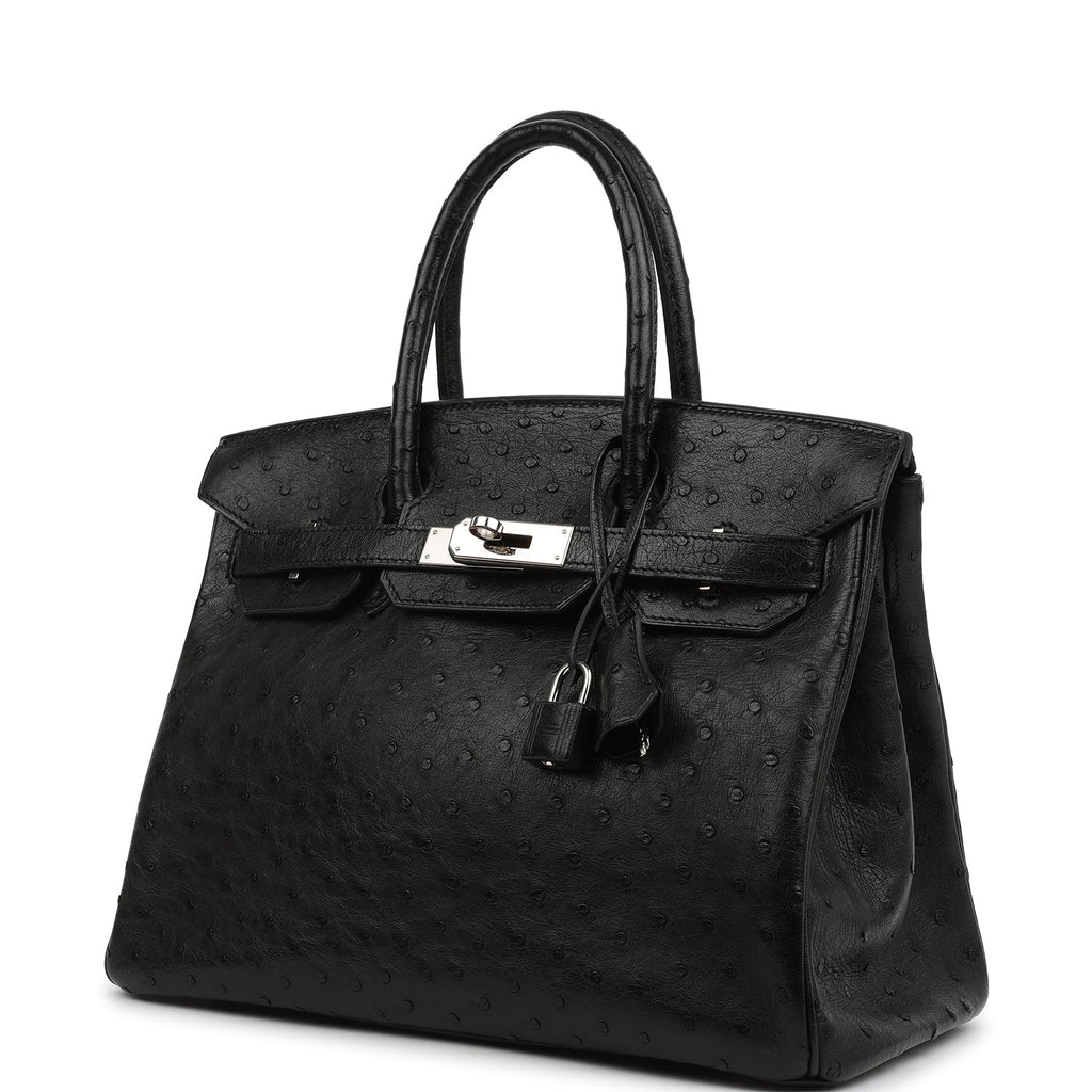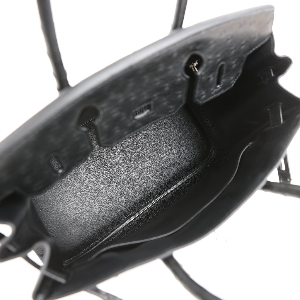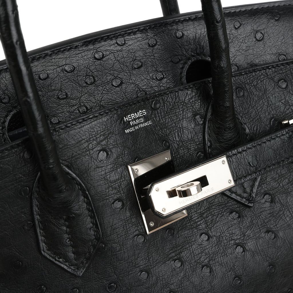 Vintage Hermes Birkin 30 Black Ostrich Palladium Hardware Shop for an authentic vintage Hermes Birkin 30 in Black ostrich leather with palladium hardware in excellent condition at Madison Avenue Couture.