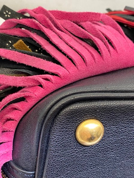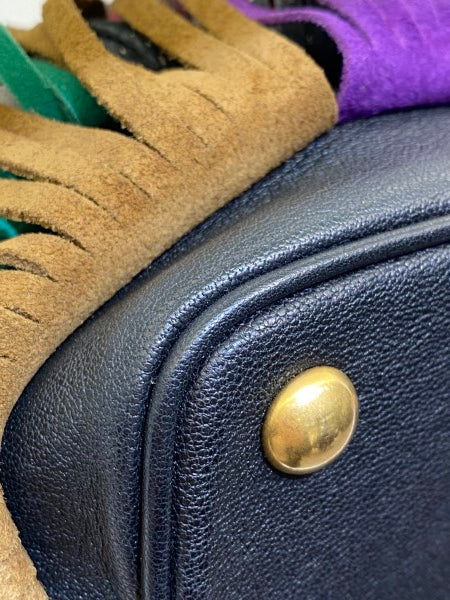 • Material: Black Calfskin Leather with Multicolor Fring Details