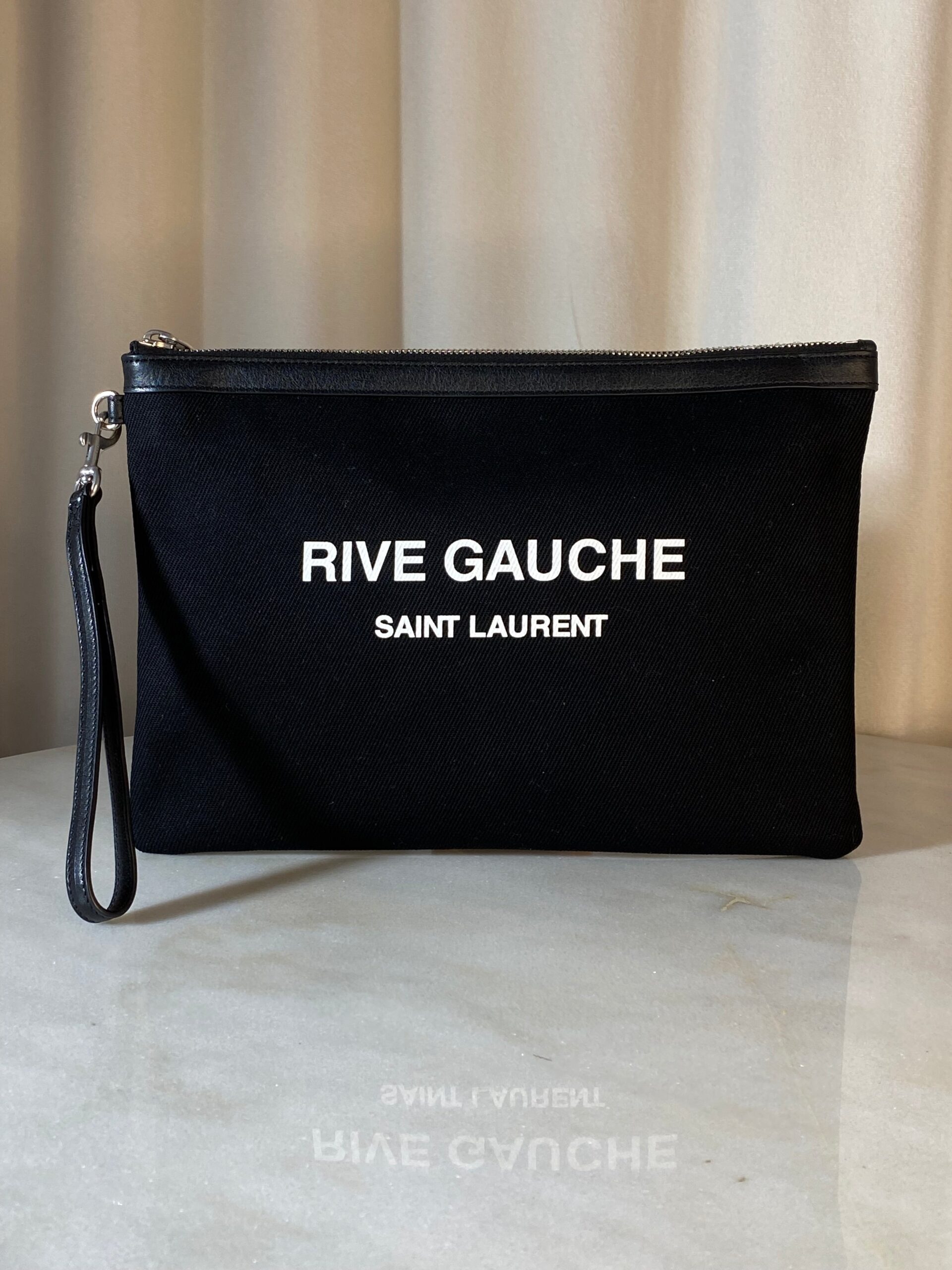 YSL Black Rive Gauche Zip Pouch W/ Handle